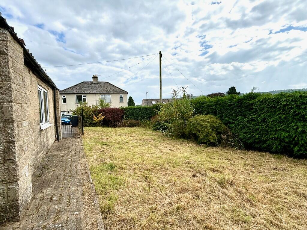 A three bedroom semi-detached bungalow with double garage, drive and gardens with scope for general updating.