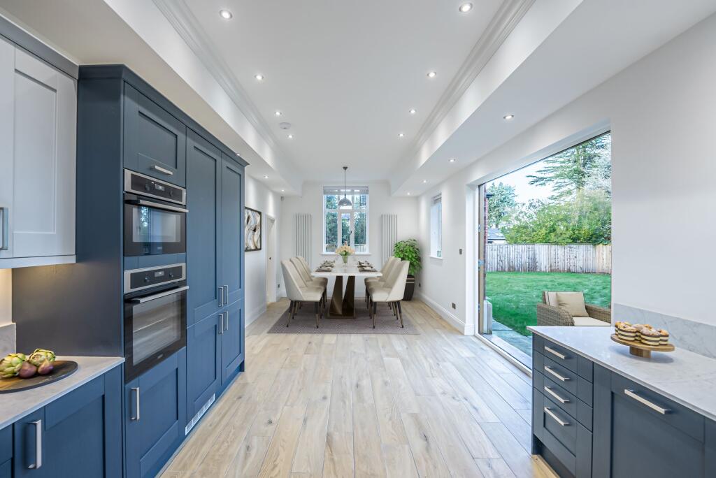 This four-bedroom, four-bathroom property located on The Avenue in St Mary’s, Trafford, presents itself as a well-maintained and stylish family home. The images reveal a recent refurbishment to a high standard, boasting a modern, spacious interior. The kitchen is a notable highlight, featuring contemporary cabinetry and top-of-the-line appliances, making it ideal for modern living. Multiple living spaces offer ample room for relaxation and family activities, while the bedrooms feature plenty of natural light, creating a bright and airy atmosphere. The property’s exterior is equally appealing, showcasing a well-landscaped garden, and a unique architectural design, adding to its overall charm. The proximity to highly rated schools such as Ashton-On-Mersey School and several train stations enhances the property’s appeal to families seeking both convenient access to amenities and quality education. The provided information doesn’t include the precise square footage of the plot, hindering a thorough assessment of the land value. However, the given price point, considering the location and condition, appears to be within a competitive market range, though not necessarily exceptional value. Overall, this property represents an appealing and comfortable family home in a sought-after area.
