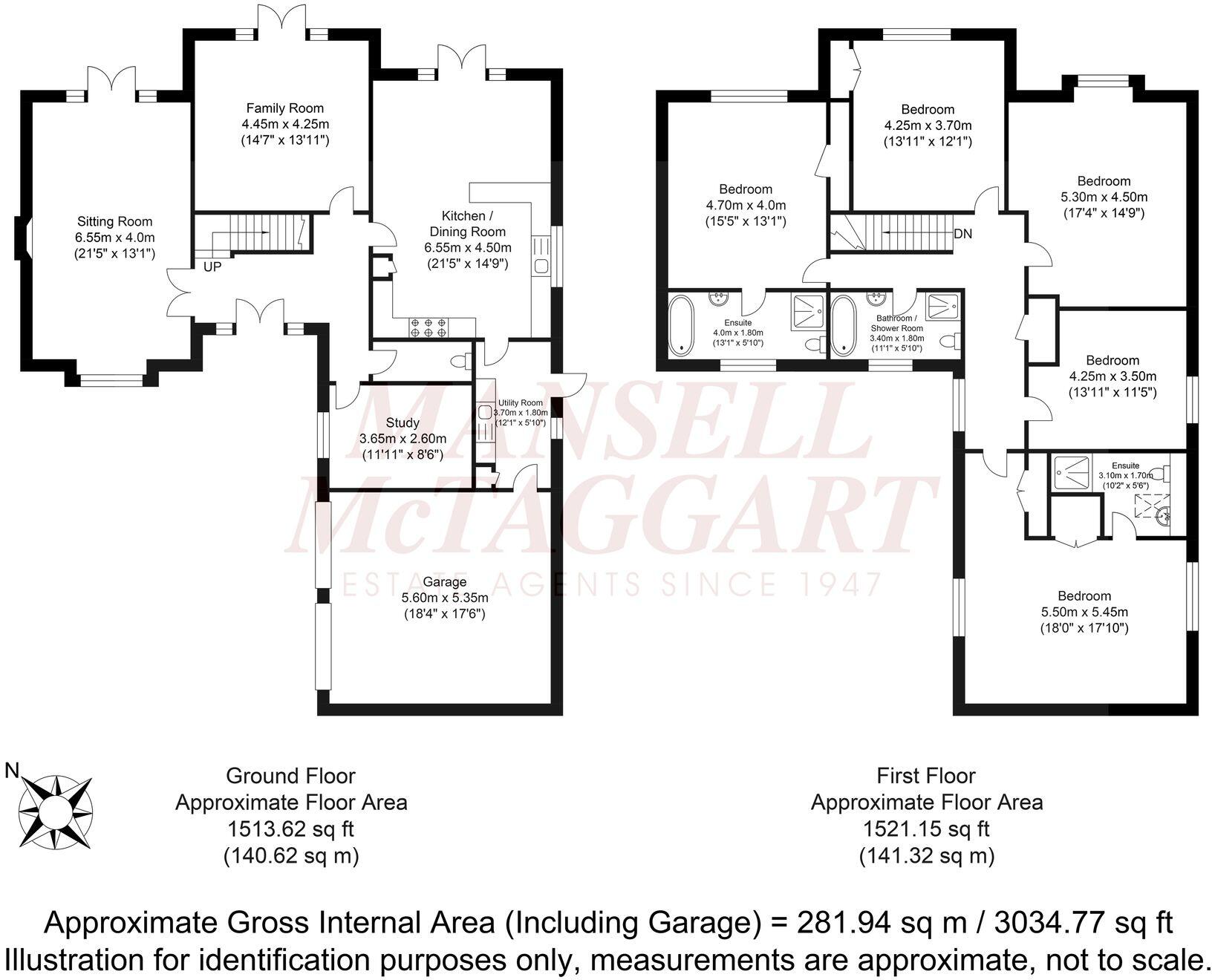 A spacious and superbly located 5 double bedroom, 3 reception room detached house of 3,034 sq ft, built in 1999 with 2 en suites, driveway for 6 vehicles, double garage and 0.17 acre corner plot garden.