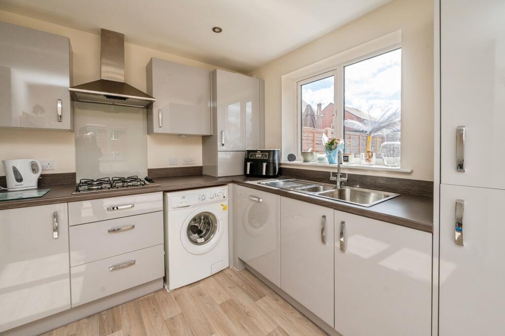 This is a modern semi-detached property in Kidderminster. It features three bedrooms and two bathrooms. The interior appears to be in good condition, with a modern kitchen and bathrooms. The property also benefits from a garden. While the location is not the most prime, it is still conveniently located near schools and transportation. The asking price seems reasonable, making it an attractive option for first-time buyers or investors.