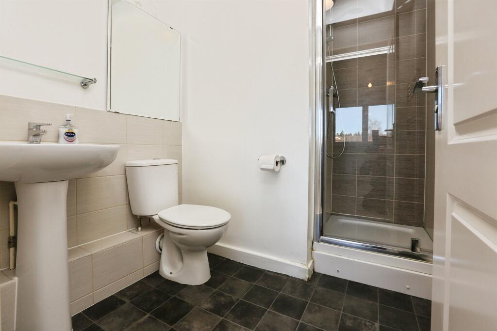Stylish two-bedroom second floor apartment in a small block of six. Open-plan lounge, kitchen and dining area with balcony, newly fitted kitchen, new carpets and décor throughout, en-suite to main bedroom, allocated parking and communal storage.