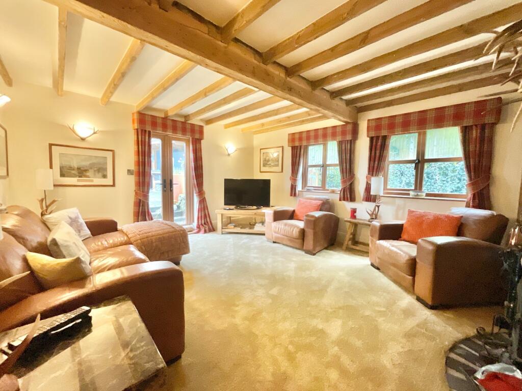 This historic 4-bed property offers a warm welcome with spacious rooms, exposed beams, limestone flooring, and underfloor heating. Outside features stables, wildlife pond, sheds, bar, ample lawn space, and more. Perfect for families and furry friends. Contact us for a private viewing!