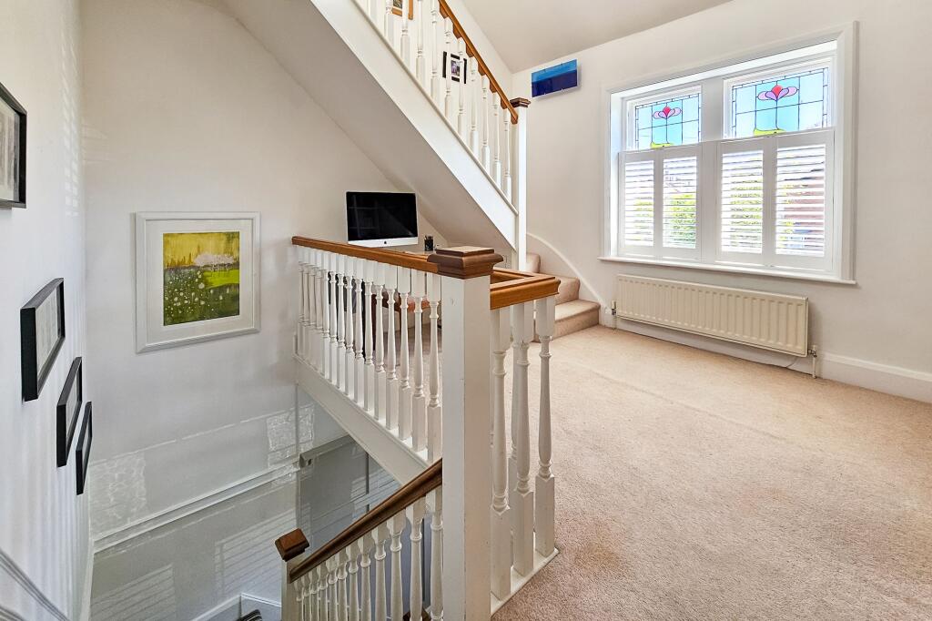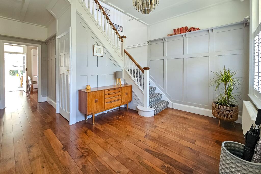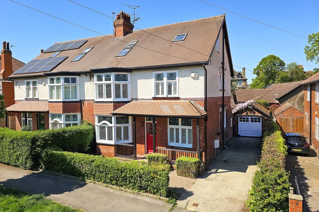 A charming 5 bedroom period semi-detached home built circa 1920 offering many original features from the Arts & Crafts era with light and airy modern interiors over three floors standing in mature Westerly facing lawned gardens with a side driveway and garage located along a sought after tree lin...