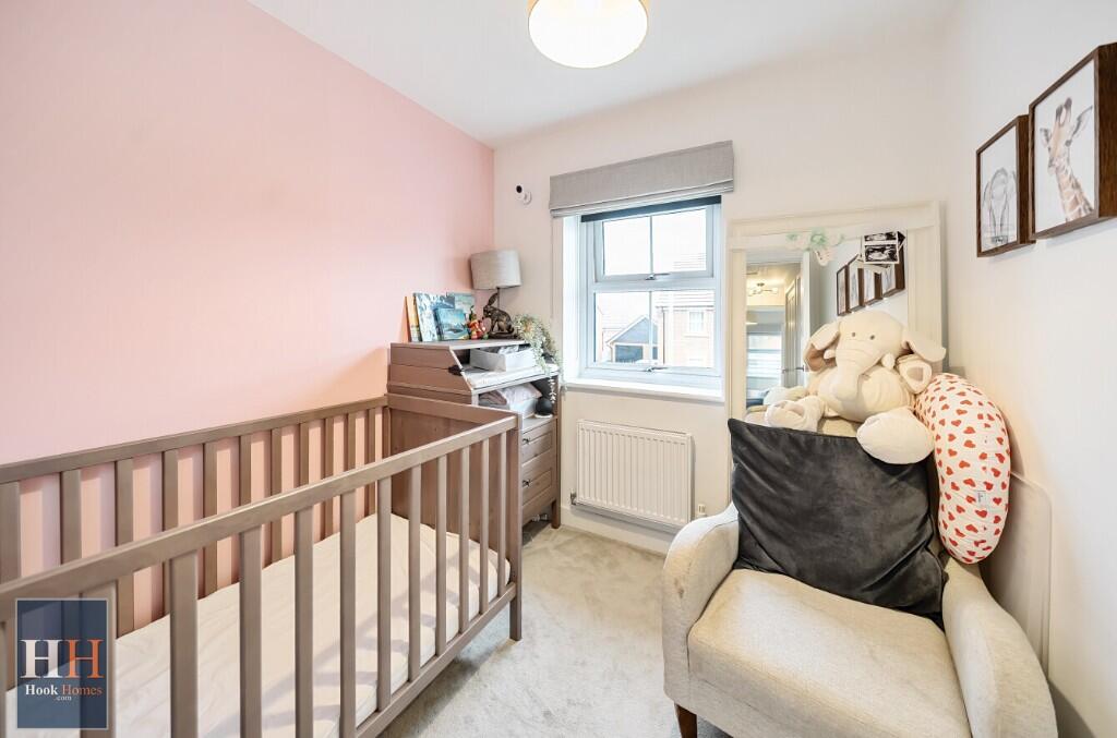 This three-bedroom, two-bathroom semi-detached house in Hook, Hampshire is presented in excellent condition, as shown in the accompanying photographs. The interior is modern and well-maintained, with a contemporary kitchen and updated bathrooms. The property benefits from having a small garden providing some outdoor space. The location in Hook offers access to highly-rated primary schools, and is in proximity to a train station giving relative commutes to London and surrounding areas. The price of £450,000 appears reasonable relative to comparable properties in the vicinity, although the lack of detailed pricing data from nearby properties for comparison makes this difficult to assess with perfect accuracy. Overall, this property presents an attractive option for a family or first time buyer looking for a move-in ready home in an agreeable location.