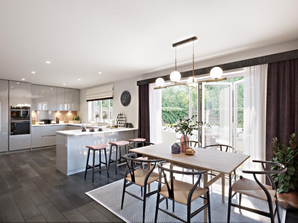 A STYLISH 3 BEDROOM family home with integral GARAGE, fully integrated German-manufactured kitchen, IMPRESSIVE OPEN PLAN kitchen/diner, FRENCH DOORS, private patio & garden. SPACIOUS LOUNGE, STUDY & WC. 3 bedrooms inc master bedroom featuring EN-SUITE SHOWER ROOM, modern family bathroom.