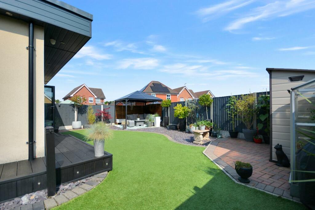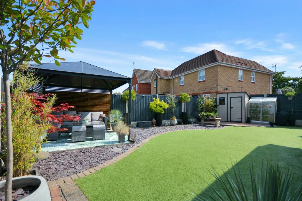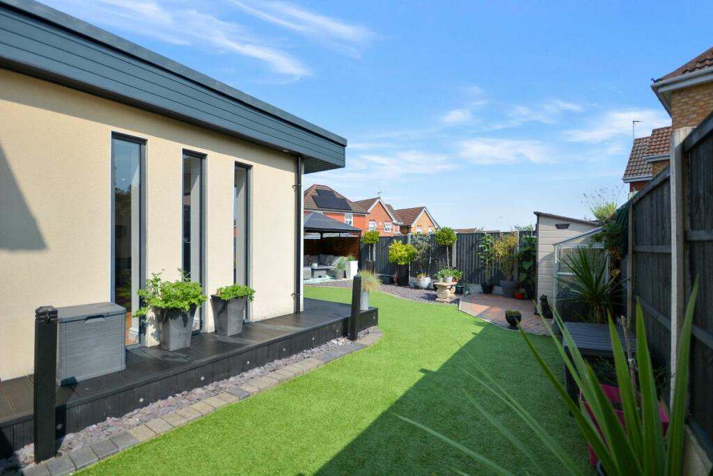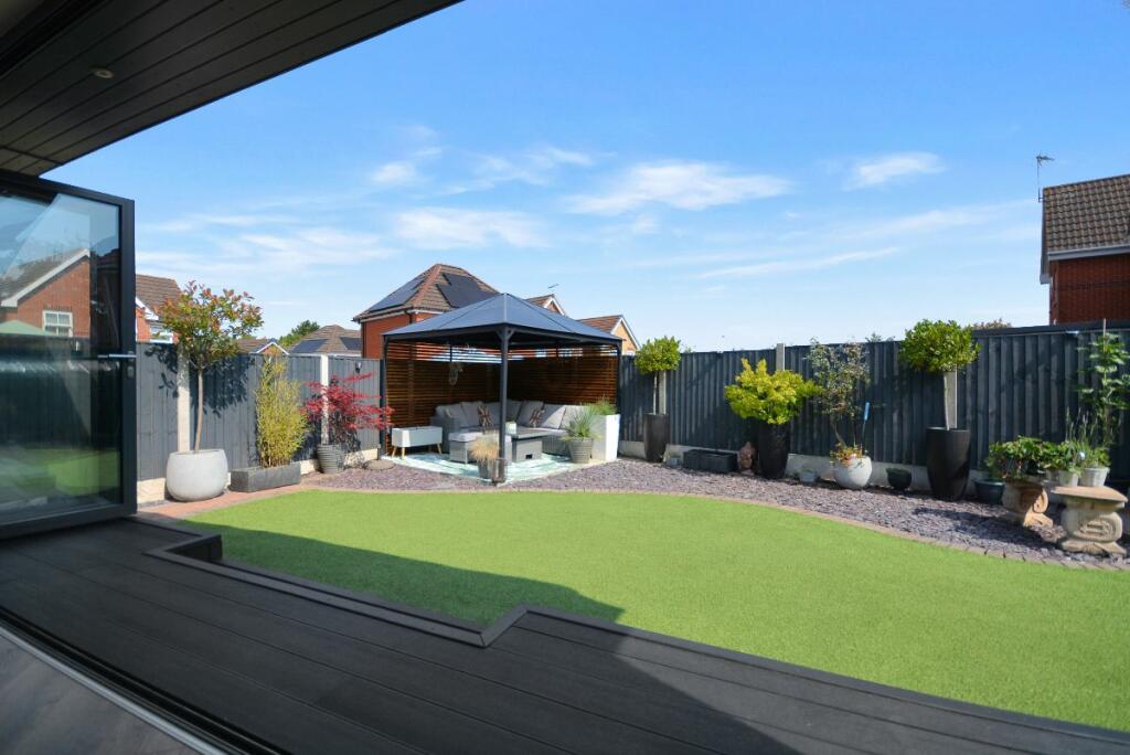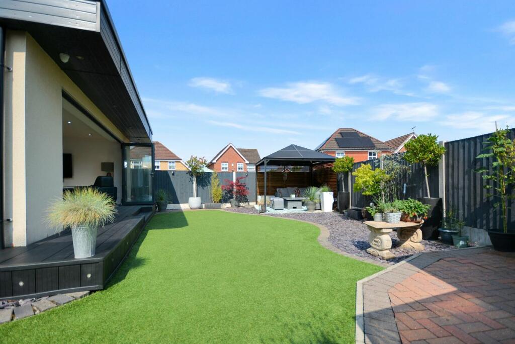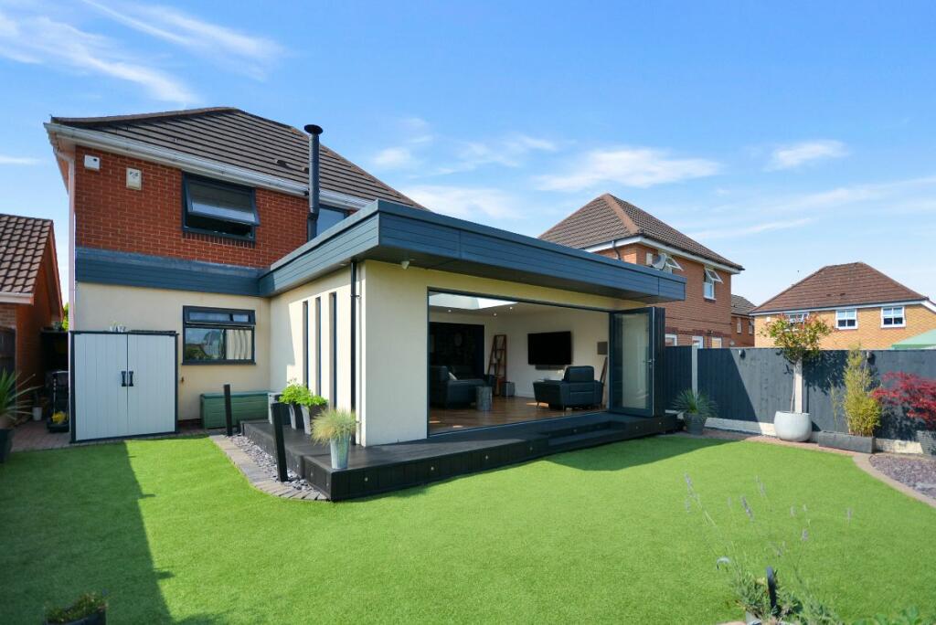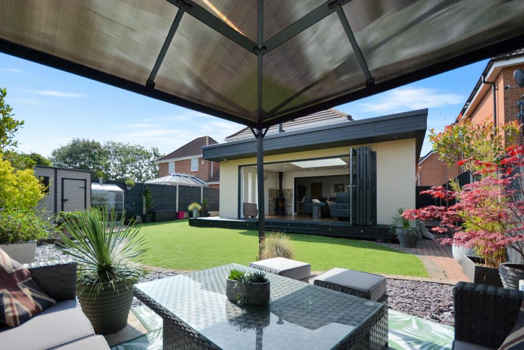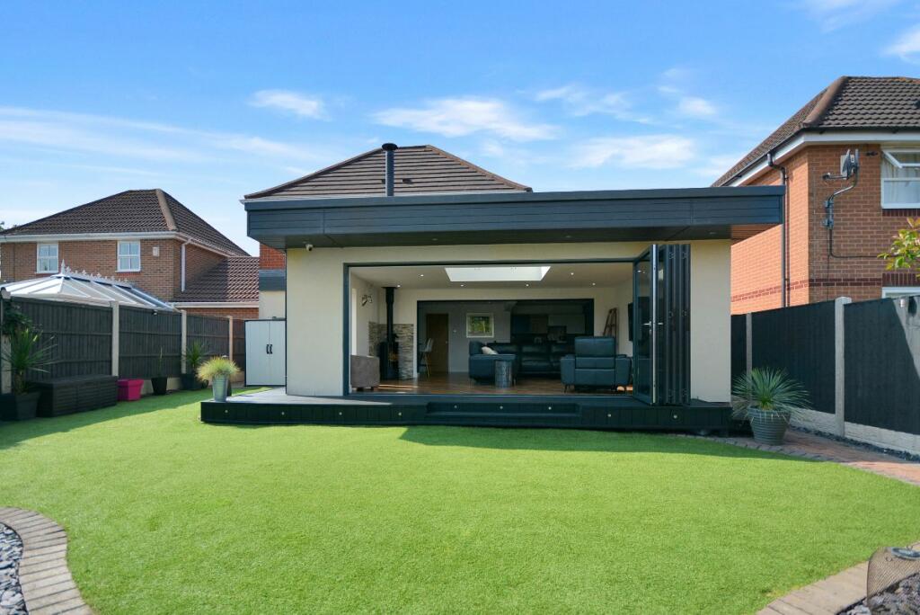 This four-bedroom detached house located in The Dumbles, Sutton-in-Ashfield, Nottinghamshire presents a compelling proposition for a buyer. The property is situated on the Ashfields estate offering a convenient location relative to local schools and railway stations. The provided images clearly demonstrate a substantial and recent extension to the property. This addition seems to have transformed the property with a modern, open-plan kitchen and living space. The quality of the fixtures and fittings is impressive and the overall finish appears high-end. Beyond the interior renovations, the property boasts a well-maintained and spacious rear garden, including a paved patio area, an artificial lawn, a gazebo, a shed, and a greenhouse. This provides an excellent outdoor space for relaxation and entertaining. The inclusion of four bedrooms and two bathrooms suggests ample space for a family. The estimated distance to nearby schools and railway stations makes this property particularly well-suited to families. While more detailed data (such as exact square footage and a breakdown of the local property market) would allow for a more precise valuation, the current list price seems appropriate, given the property’s condition and the extent of the recent improvements. Overall, this is an attractive property in a reasonably desirable location, which has clearly been well-maintained and significantly updated.