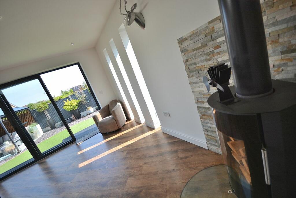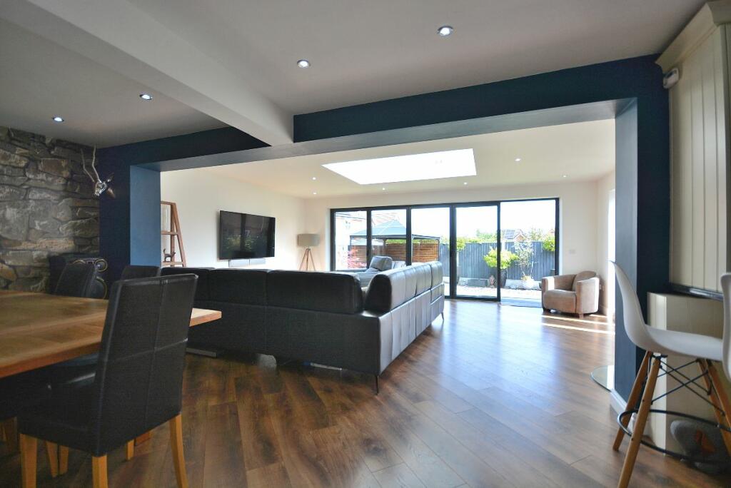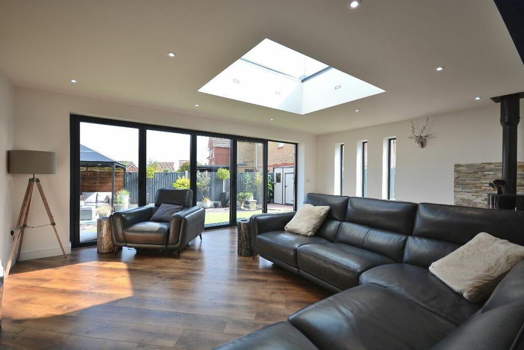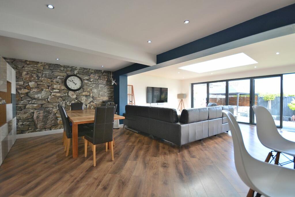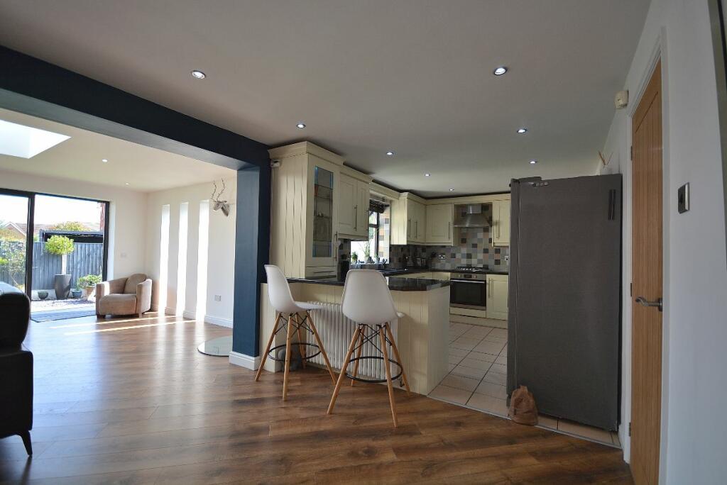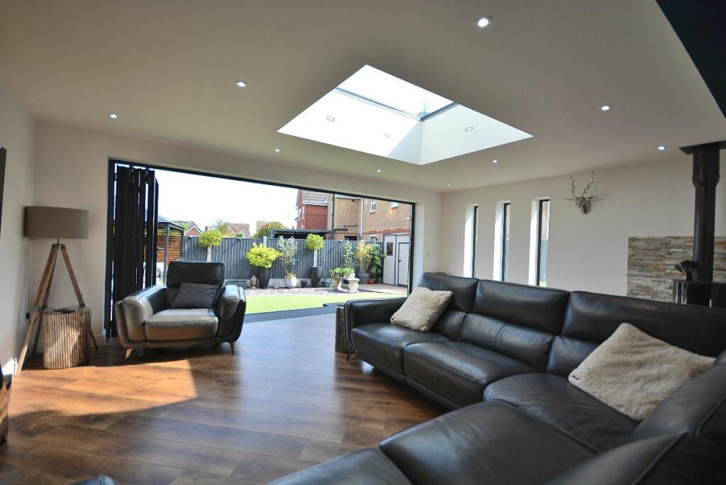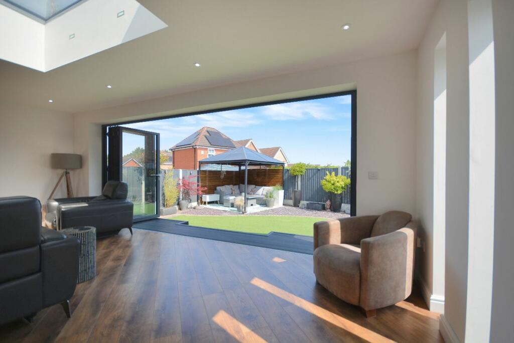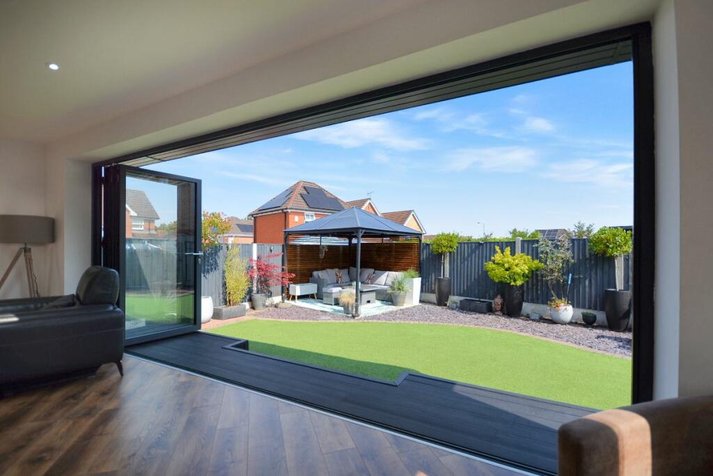 This four-bedroom detached house located in The Dumbles, Sutton-in-Ashfield, Nottinghamshire presents a compelling proposition for a buyer. The property is situated on the Ashfields estate offering a convenient location relative to local schools and railway stations. The provided images clearly demonstrate a substantial and recent extension to the property. This addition seems to have transformed the property with a modern, open-plan kitchen and living space. The quality of the fixtures and fittings is impressive and the overall finish appears high-end. Beyond the interior renovations, the property boasts a well-maintained and spacious rear garden, including a paved patio area, an artificial lawn, a gazebo, a shed, and a greenhouse. This provides an excellent outdoor space for relaxation and entertaining. The inclusion of four bedrooms and two bathrooms suggests ample space for a family. The estimated distance to nearby schools and railway stations makes this property particularly well-suited to families. While more detailed data (such as exact square footage and a breakdown of the local property market) would allow for a more precise valuation, the current list price seems appropriate, given the property’s condition and the extent of the recent improvements. Overall, this is an attractive property in a reasonably desirable location, which has clearly been well-maintained and significantly updated.