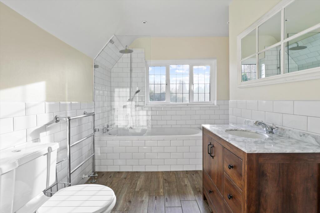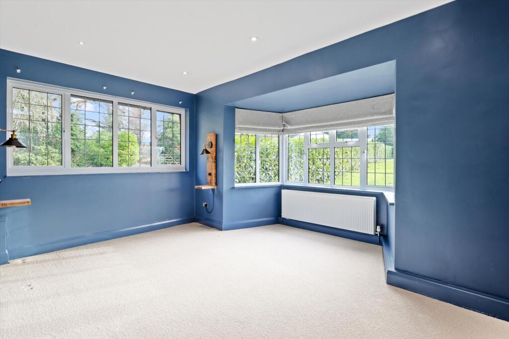 Four bedroom detached home for sale in Effingham, KT24 Set within a generous 1.14-acre plot, this detached residence offers spacious accommodation and uninterrupted far-reaching views across Effingham Golf Club and beyond. At the heart of the home is a bright, well-appointed kitchen with a cen...