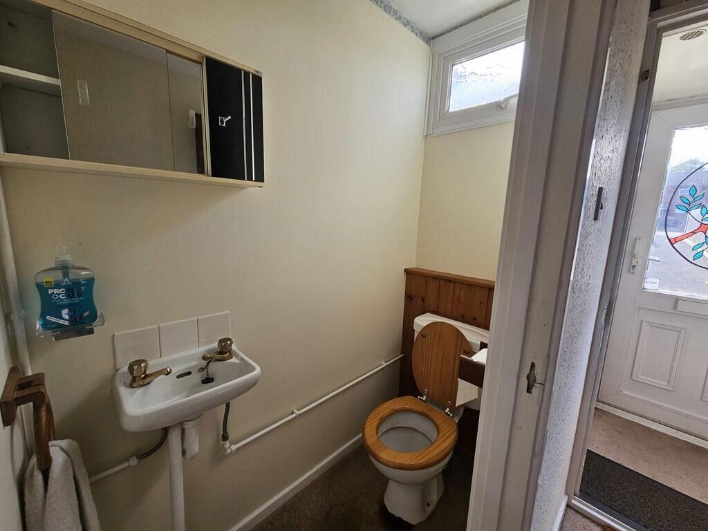 APPROACH Front lawn and path leading to door. ENTRANCE PORCH Double glazed windows to side aspect, double glazed door to front aspect and storage cupboard. ENTRANCE HALL Single glazed door to front aspect and hot air flow heater. DOWNSTAIRS W.C Double glazed window to front aspect, h...