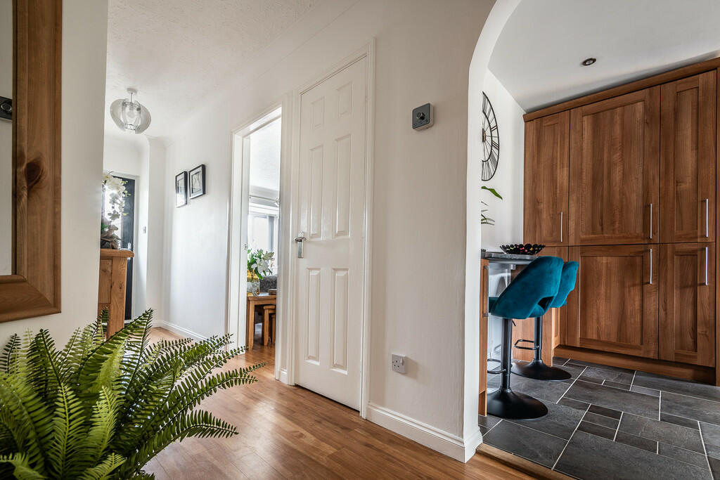 This four-bedroom detached house in Exminster, Devon presents a strong value proposition for families or buyers seeking a blend of village life and city accessibility. The property’s location within a quiet cul-de-sac contributes to its peaceful atmosphere, while its closeness to amenities, including well-regarded schools and train stations, makes it practical for daily life. The interior is well-presented and appears to feature recently updated kitchen and bathroom facilities, creating a comfortable and stylish living space. The outdoor area provides substantial garden space and a decked patio suitable for al fresco dining and relaxation.