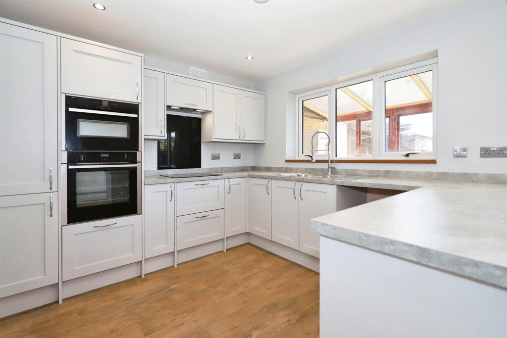 This four-bedroom detached house on Sutton Park Rise in Kidderminster, Worcestershire, is presented by Connells. The property boasts a recently refurbished interior, featuring a modern kitchen, updated bathrooms, and what appears to be a substantial amount of space. The interior images showcase a contemporary style with neutral color palettes and modern appliances. The exterior features a red garage door, a driveway, and a rear garden with a hot tub, and a shed suggesting additional storage or recreational space. The house appears well-maintained, and the listing description highlights features such as double glazing and gas central heating. The area is described as being close to a selection of primary and secondary schools. Whilst the listing price is in line with other similar properties in the area, more detailed information on plot size and accurate price per square foot data for comparable sales is required for a fuller valuation assessment. The property seems suitable for a family due to the number of bedrooms, garden, and proximity to schools.