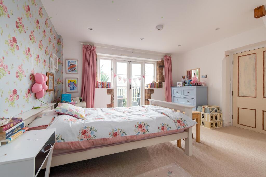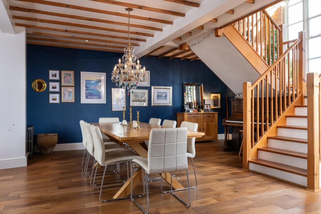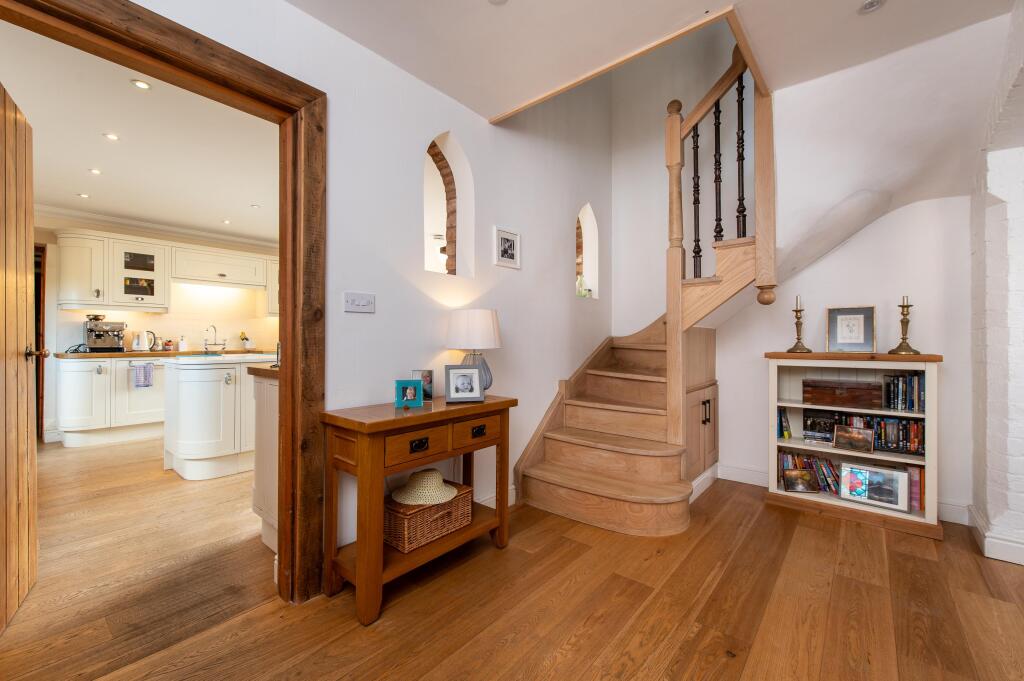 The interior has been thoughtfully renovated, blending modern amenities with period features. High-quality finishes are evident throughout, and the property appears to be in excellent condition. The exposed beams and original brickwork add character and charm, creating a warm and inviting atmosphere. The property includes a large kitchen, multiple reception rooms, and a dedicated gym. The inclusion of a games room further enhances the property’s appeal.