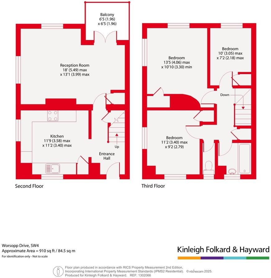 A three bedroom split level apartment arranged over the upper floors of a purpose built development benefiting from a private balcony and offered to the market with no onward chain.