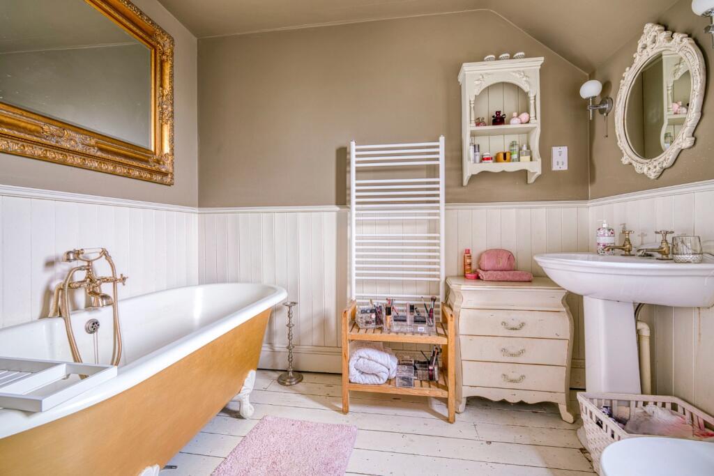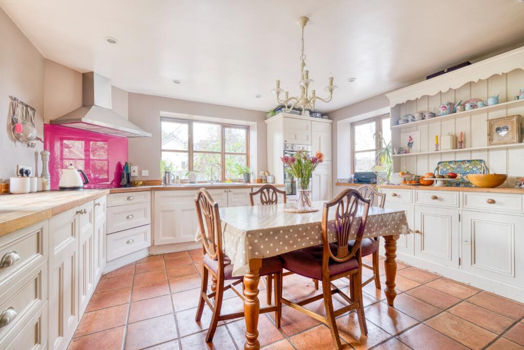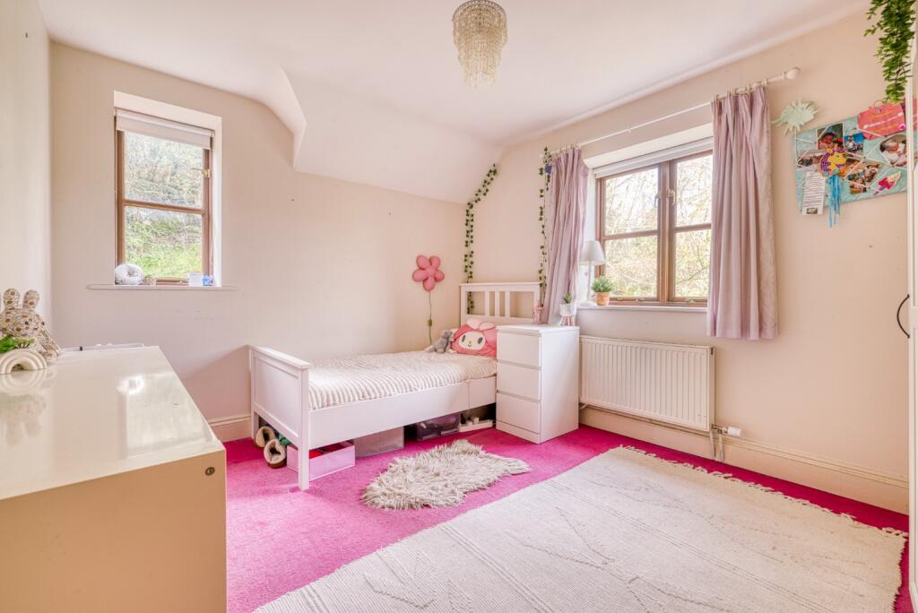 This detached property in Gurney Slade offers a blend of rural charm and convenient access to nearby towns. The house features five bedrooms and three bathrooms, making it suitable for families. The interior is well-maintained but could benefit from some modernization. The property includes a garden, additional land, and a garage, providing ample outdoor space and storage. While the location is rural, it offers a peaceful setting and proximity to both Wells and Bristol. The price per square foot is notably lower than the area average, potentially reflecting the location and the need for some updates.