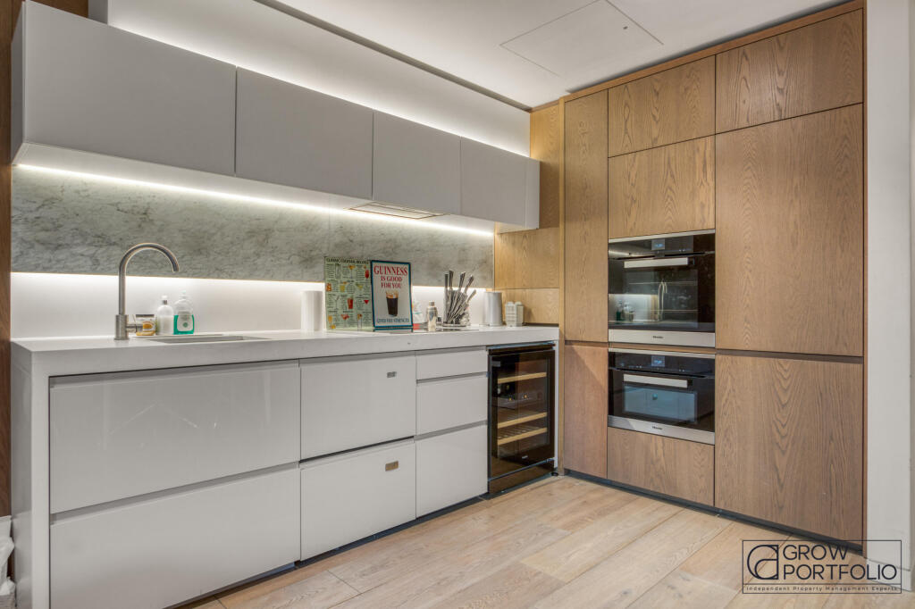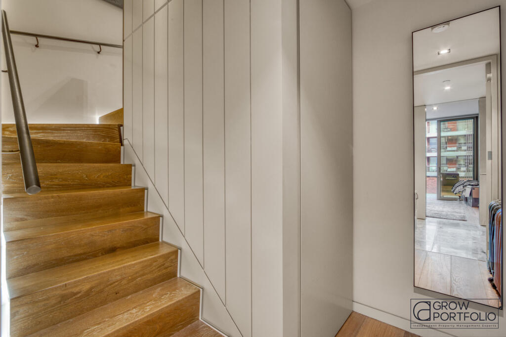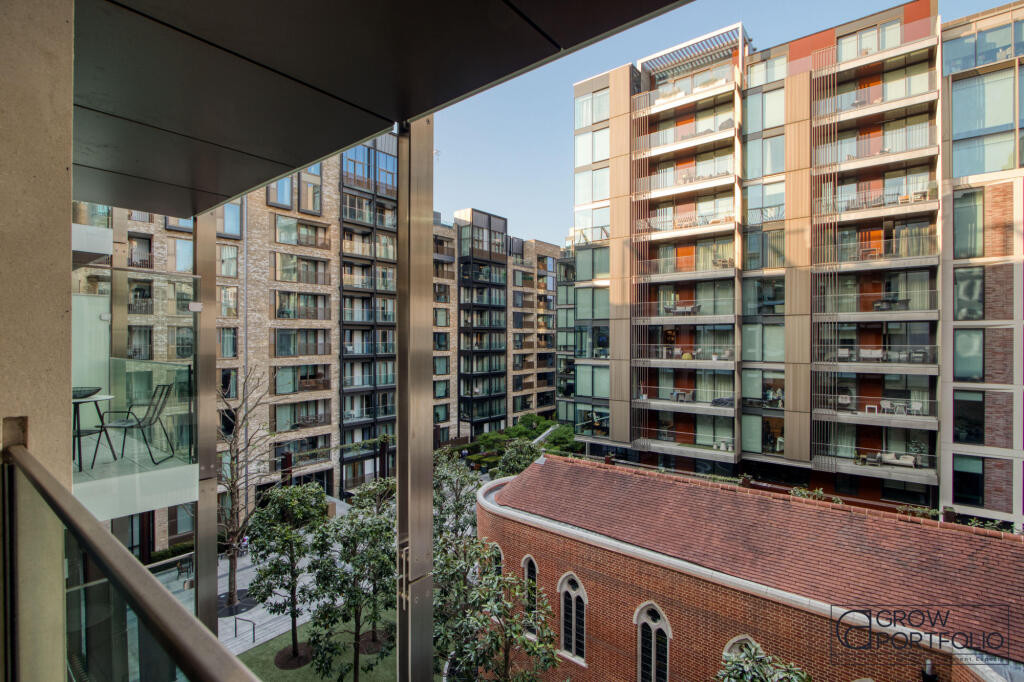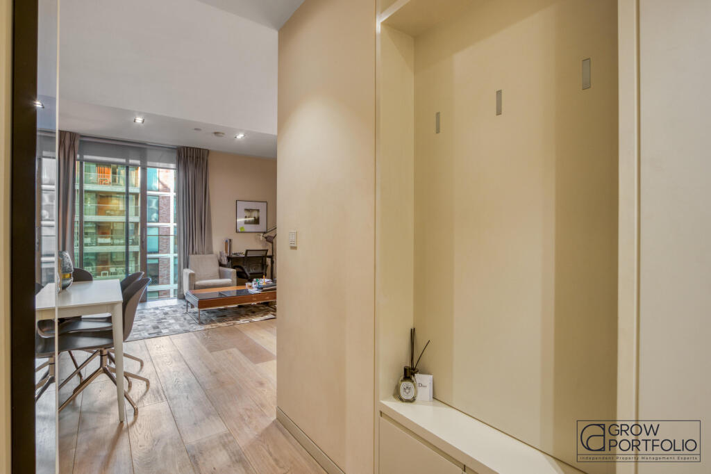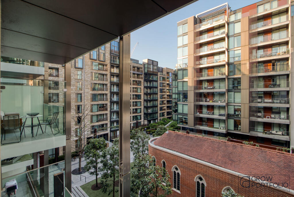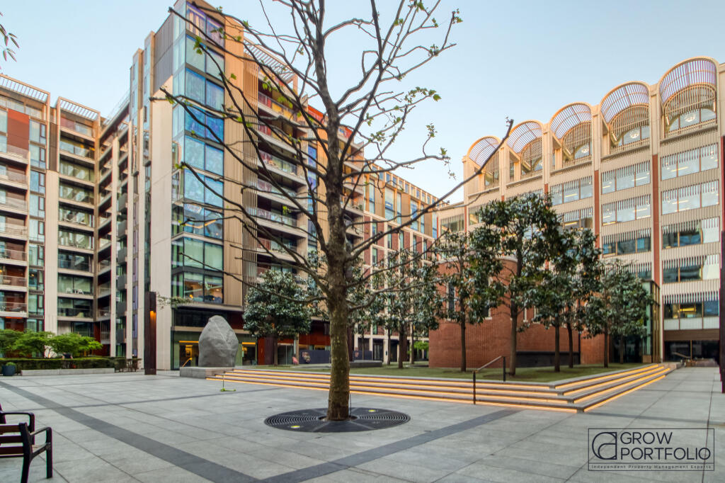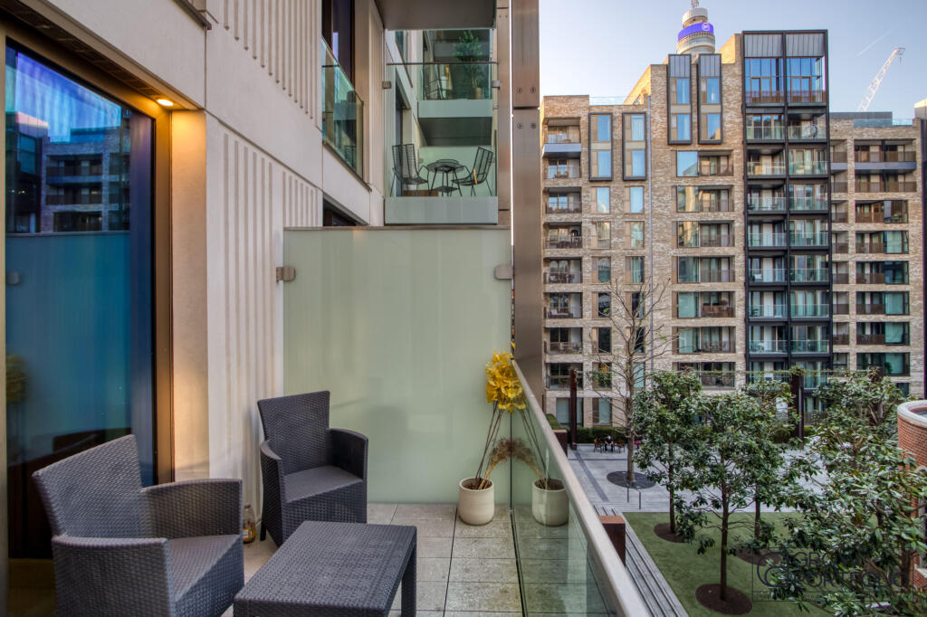 The prestigious Pearson Square development and surrounding a beautifully landscaped communal garden, this spacious onebedroom home features a private balcony, a pristine fully integrated kitchen, and ample built-in storage across two levels.