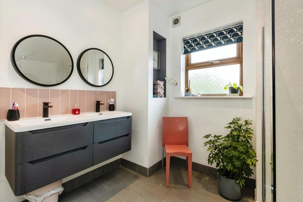 The property’s interior, as shown in the photographs, boasts a modern, updated aesthetic with well-maintained and stylish finishes. The kitchen appears to be recently fitted, and the bathrooms are contemporary. The use of light and bright colours creates a spacious and airy atmosphere throughout. The inclusion of a conservatory provides additional living space and links to the attractive, well-maintained rear garden. The garden itself offers a good amount of outdoor space with a patio area perfect for entertaining and a well-established lawn.