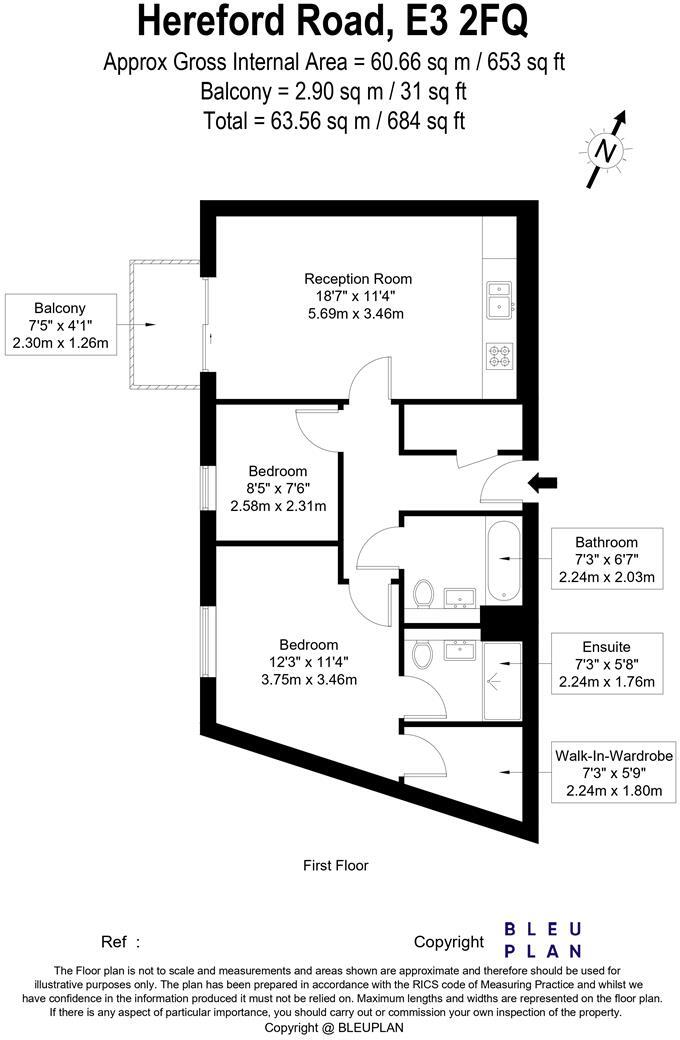 This two-bedroom, two-bathroom apartment is located on Hereford Road in Bow, London. The property spans 684.15 sq ft. The average price per sqft in the area is £746.00, while this property is listed at approximately £577 per sqft, suggesting it could be good value for money. The average apartment in the area sells for £501,607, this property is listed at £395,000. The property appears to be in good condition and of modern design, with a balcony. The property is located close to several schools, including Malmesbury Primary School and Central Foundation Girls’ School, both rated ‘Good’ by Ofsted. There are also several transportation options nearby, including Hackney Wick and Limehouse stations.