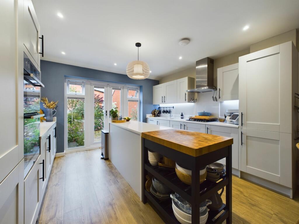 Modern detached family home "The Kelso" built by Bloor Homes. Four double bedrooms, ensuite to master, family bathroom, open plan kitchen/dining/family room, sitting room, study, utility cupboard & cloakroom. Fully landscaped garden, tandem driveway parking and garage.
