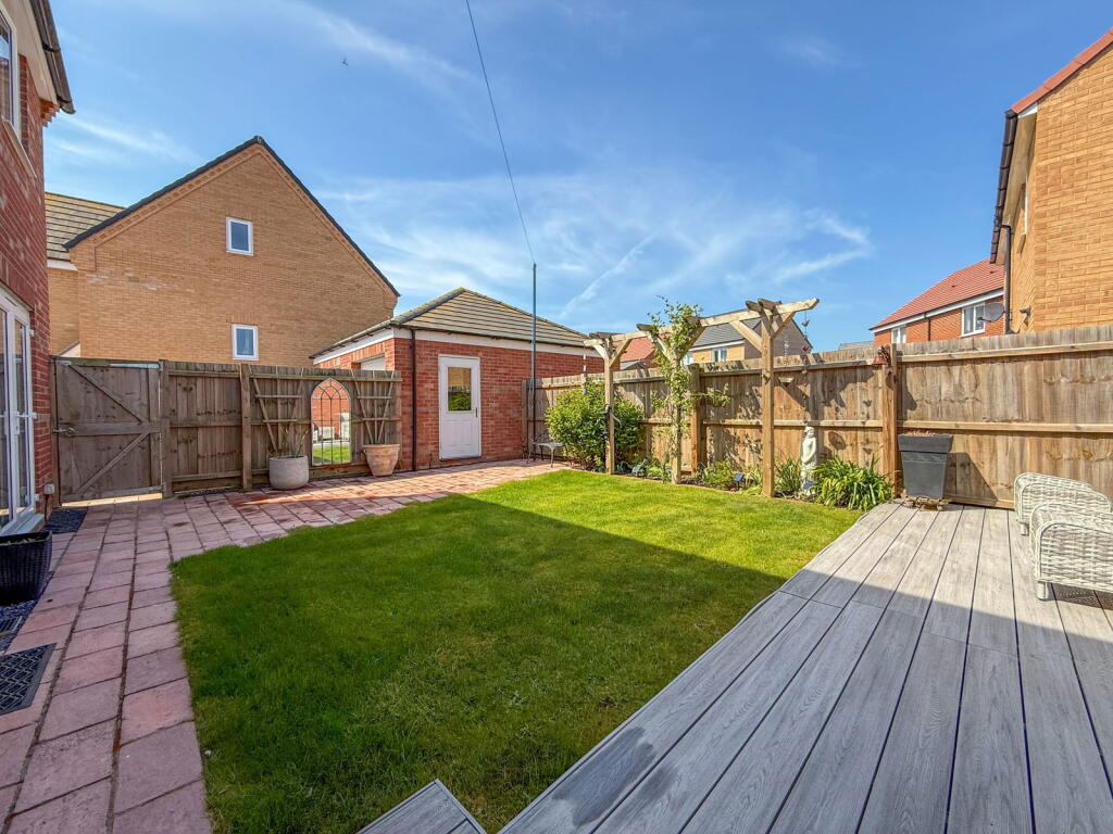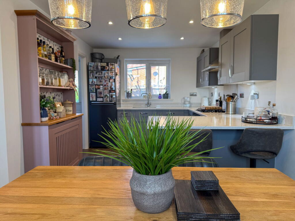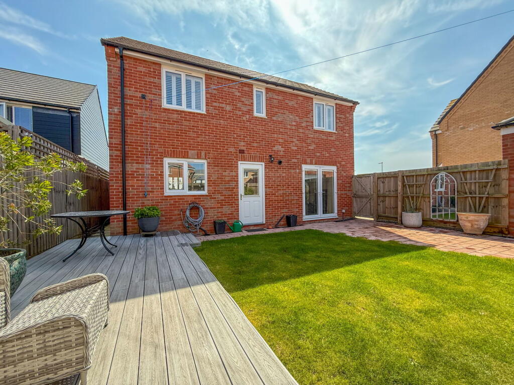 This property is a modern three-bedroom detached house located in Oulton Broad, Lowestoft. The location benefits from being close to a primary school (0.11km) and other amenities. The property itself is in excellent condition, appearing modern and well-maintained throughout. Images show a well-landscaped garden. While the average price per sqft in the area is £293, this property is listed at a price that seems reasonable considering its condition, location and the size of the plot.