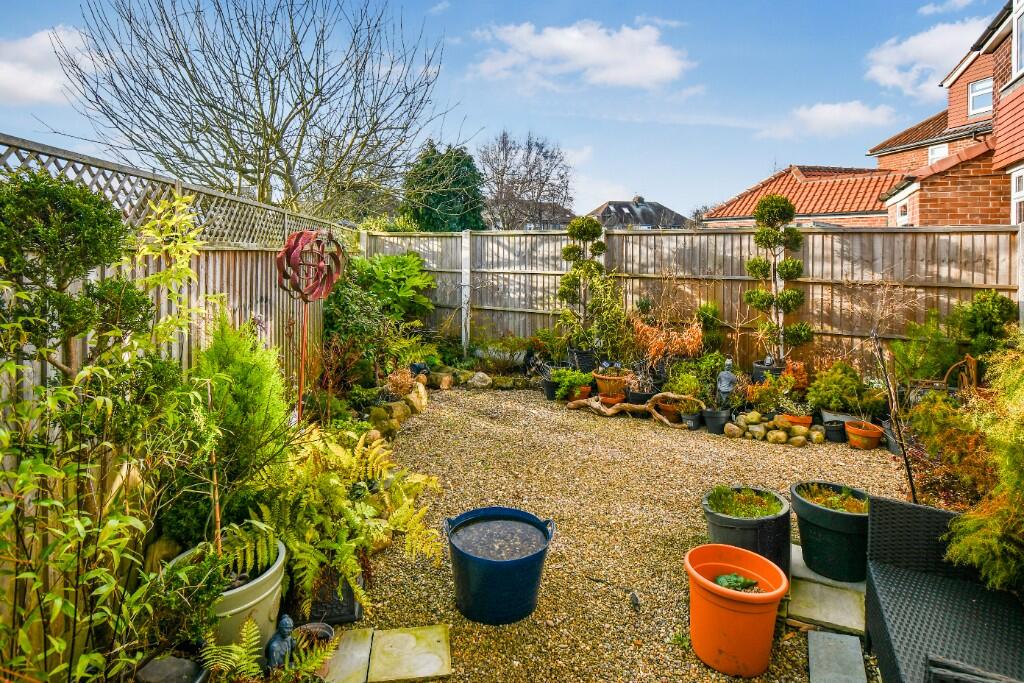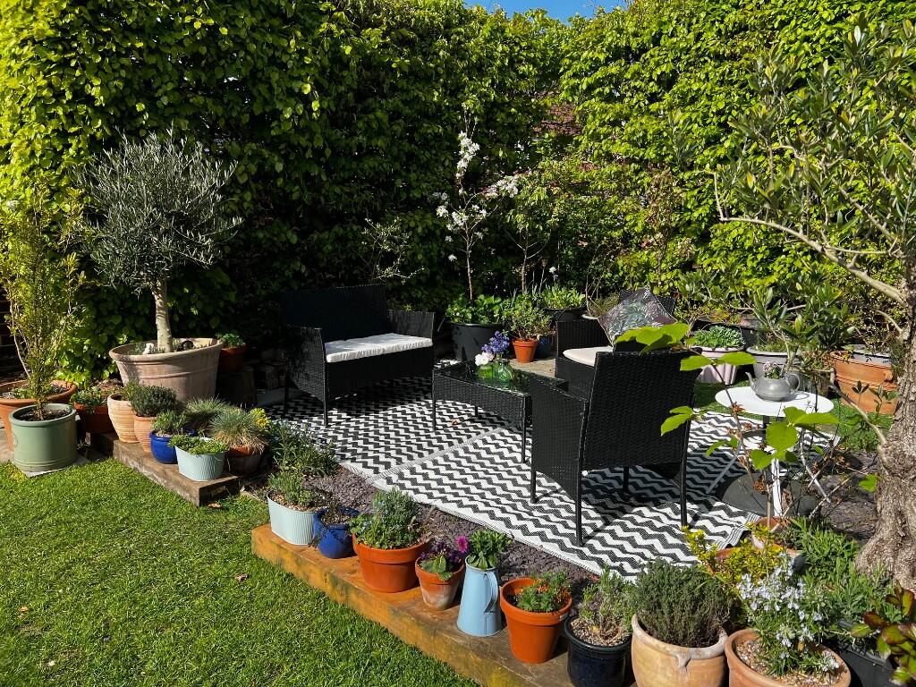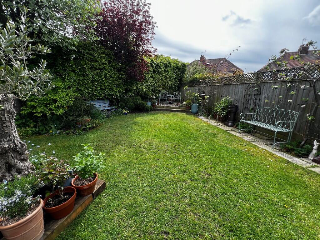 The property includes a garden, as shown in the provided photographs. The garden appears to be of a reasonable size, offering space for relaxation and gardening.