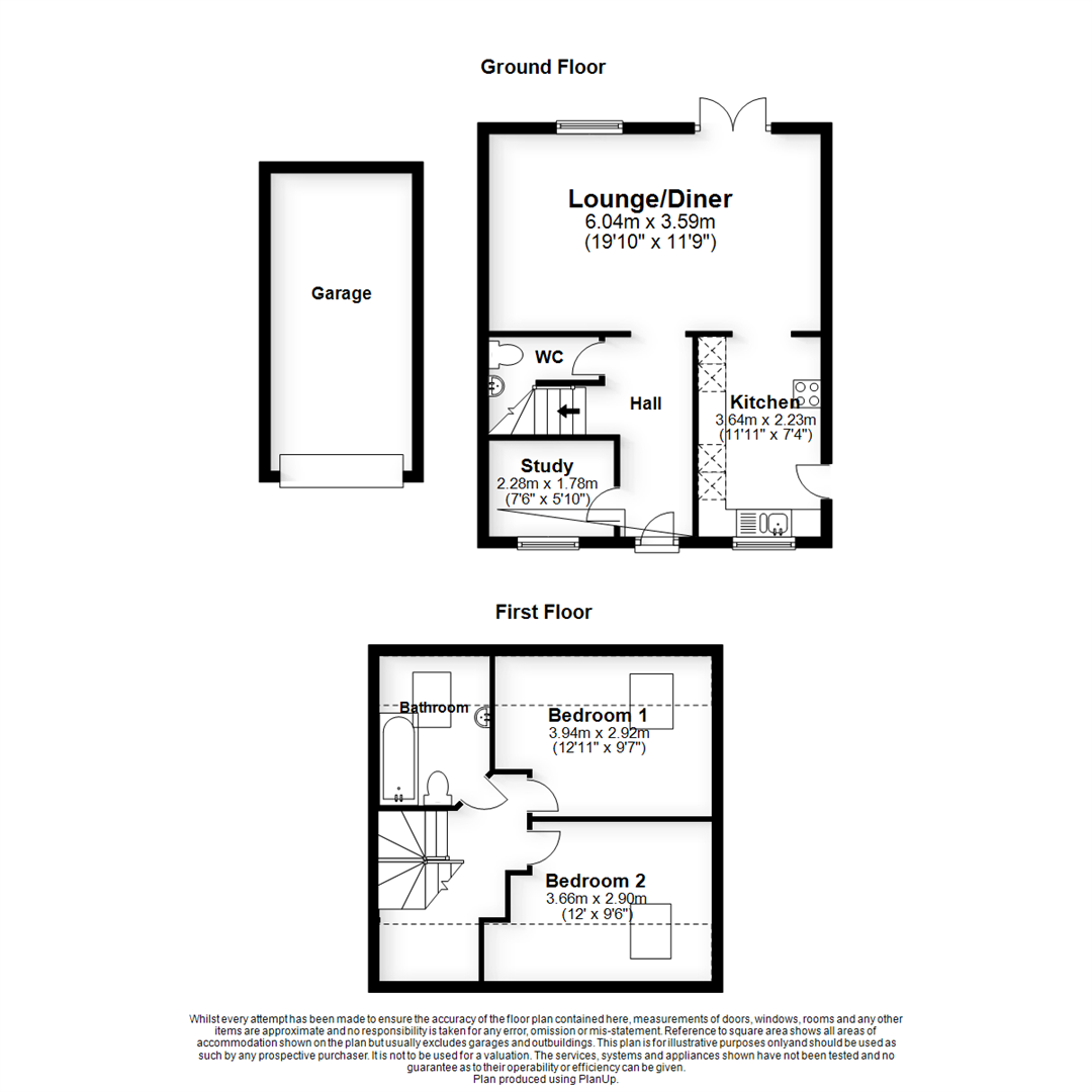 A very well presented 2 bedroom semi detached house with large driveway and garage The property has accommodation set on two floors comprising; an entrance hall, cloakroom, large lounge/dining room, and fitted kitchen with some appliances. There is also a study which could fit a single b...