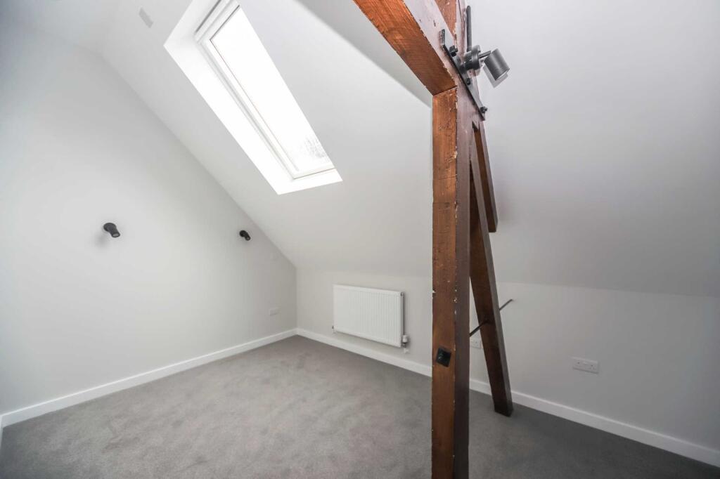 Recently converted apartment ideally located just off the High Street. Two double bedrooms, one with an en-suite, stylish contemporary kitchen, spacious open plan sitting room with vaulted ceiling. Allocated car parking space with EV charging point.