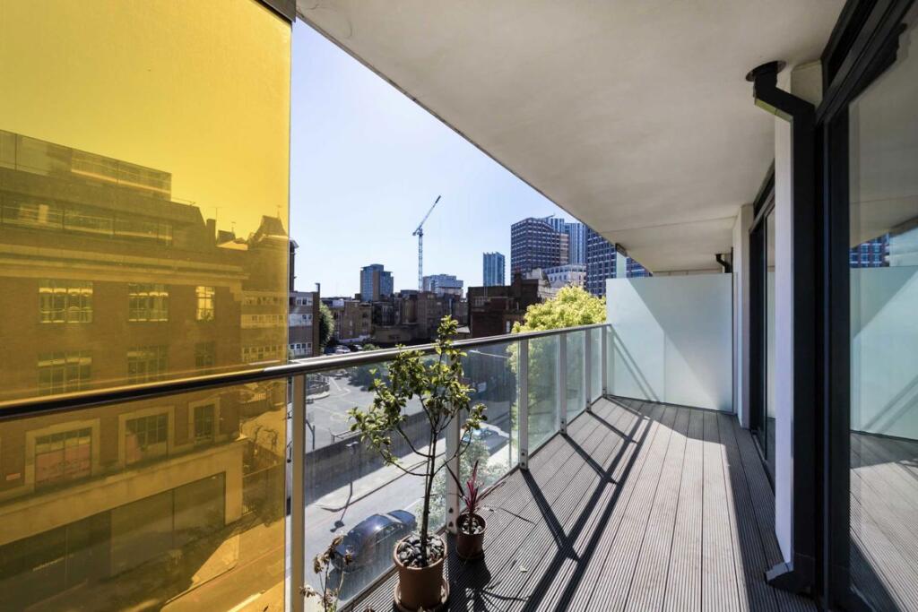 A large one double bedroom apartment is based in the popular Kensington Apartments in the heart of Spitalfeilds. The property has a large living space that leads straight onto a private balcony.