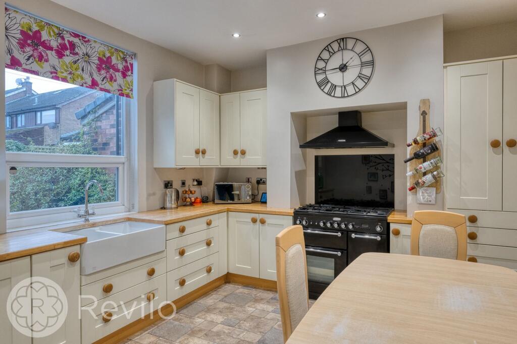 This is a two-bedroom terraced property located on Rochdale Road East in Heywood, Greater Manchester. Marketed by Revilo Homes Ltd, the house is listed for £199,950. The property appears to be in good condition, with a modern kitchen and bathroom. It features a rear garden, which is paved. The location offers proximity to schools and transportation links. While the price is above the average for the area, the condition and features of the property may justify the premium.