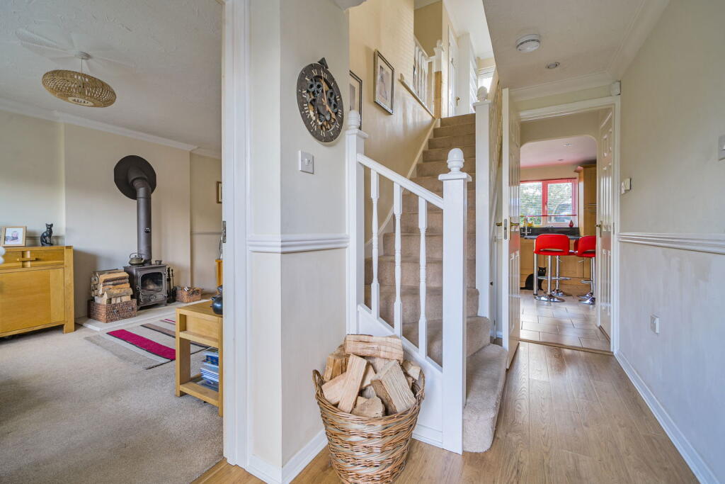 Positioned in an enviable spot overlooking a green, this spacious and well-appointed home in The Crofts, Hatch Warren, offers a wonderful blend of comfort, practicality, and standout features for modern family living.