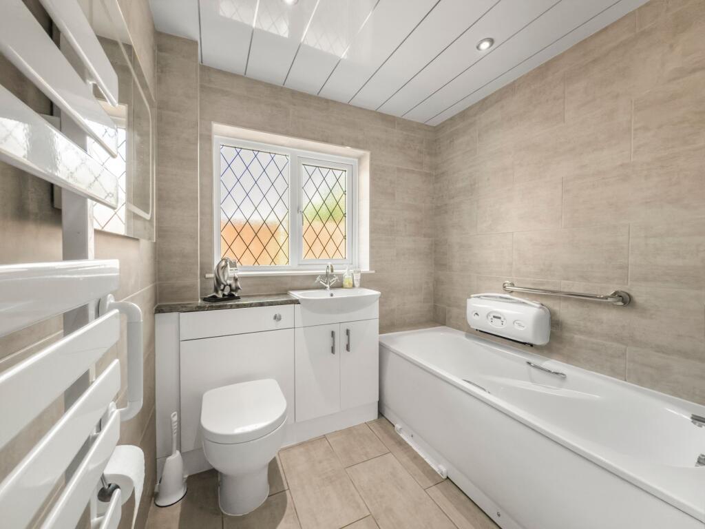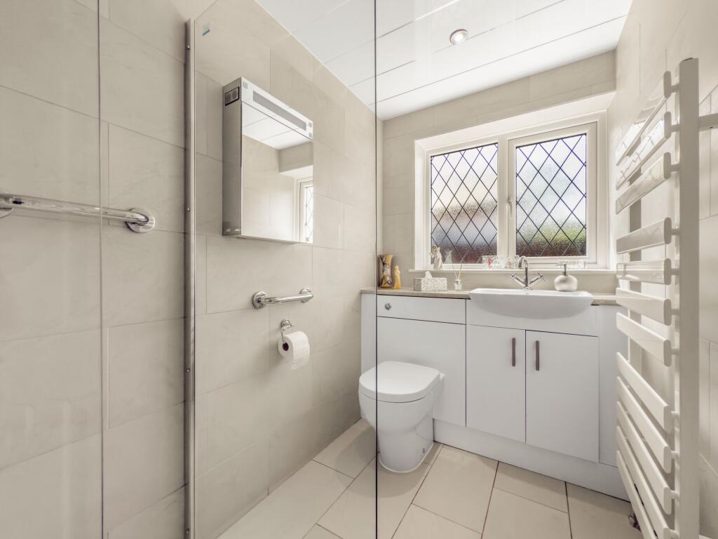 Based on the images, the property appears to be in good condition. The interior is well-maintained and modernised, with updated kitchen and bathrooms. There is no visible evidence of significant repairs or renovations needed. The garden is relatively small but well-maintained, with a paved area and a conservatory. The presence of a shed adds to the property’s practicality.