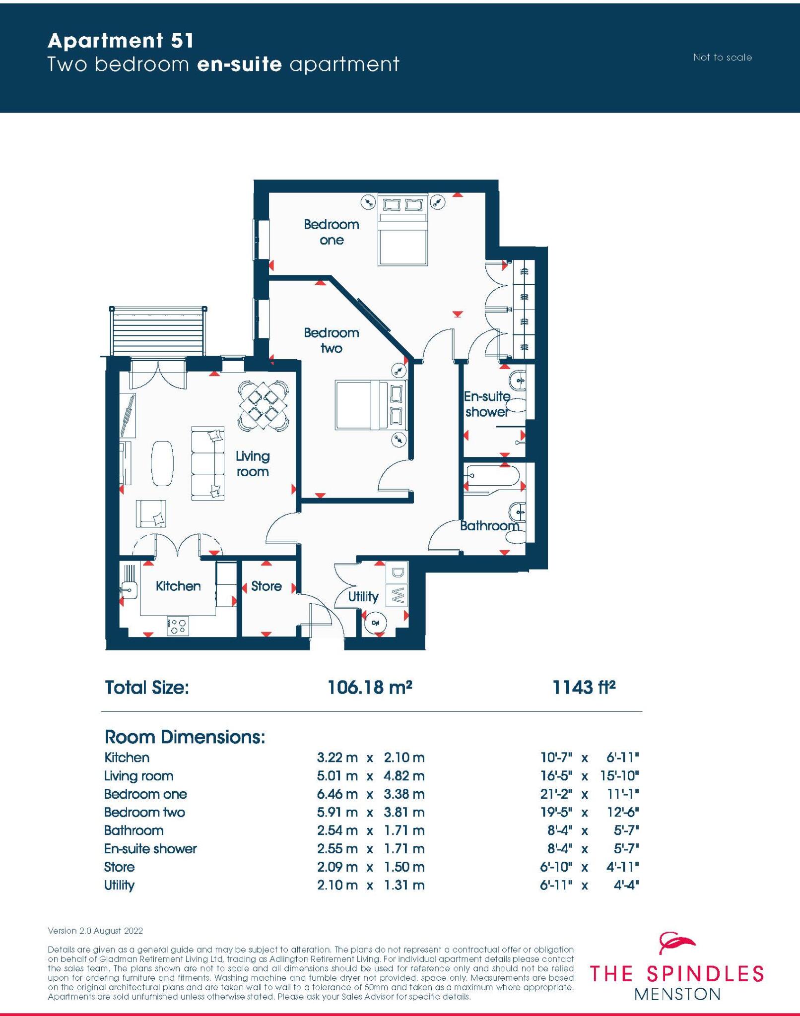 Apartment 51 is a two bedroom en-suite apartment with walk-out balcony overlooking the beautifully landscaped gardens, located on the second floor. There are fully fitted 80% wool blend carpets throughout and a contemporary feature fireplace with integrated electric fire in the lounge. The master...