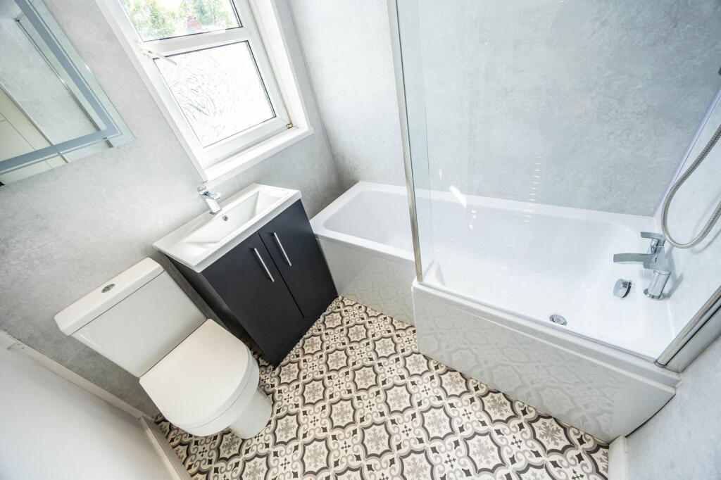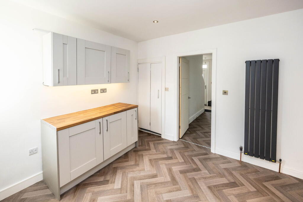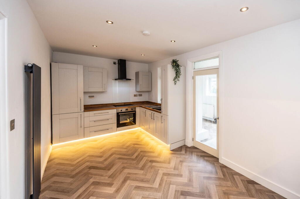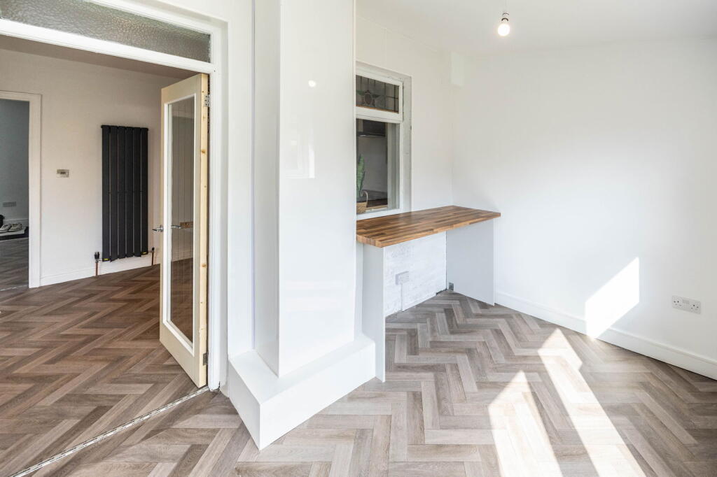 Based on the provided images, the property appears to have undergone a recent and extensive renovation. The kitchen, bathroom, and flooring are modern and in excellent condition. The interior walls and ceilings are freshly painted, and the property has a clean and well-maintained appearance overall. There is evidence of modern fixtures and fittings throughout. This suggests a high condition score.