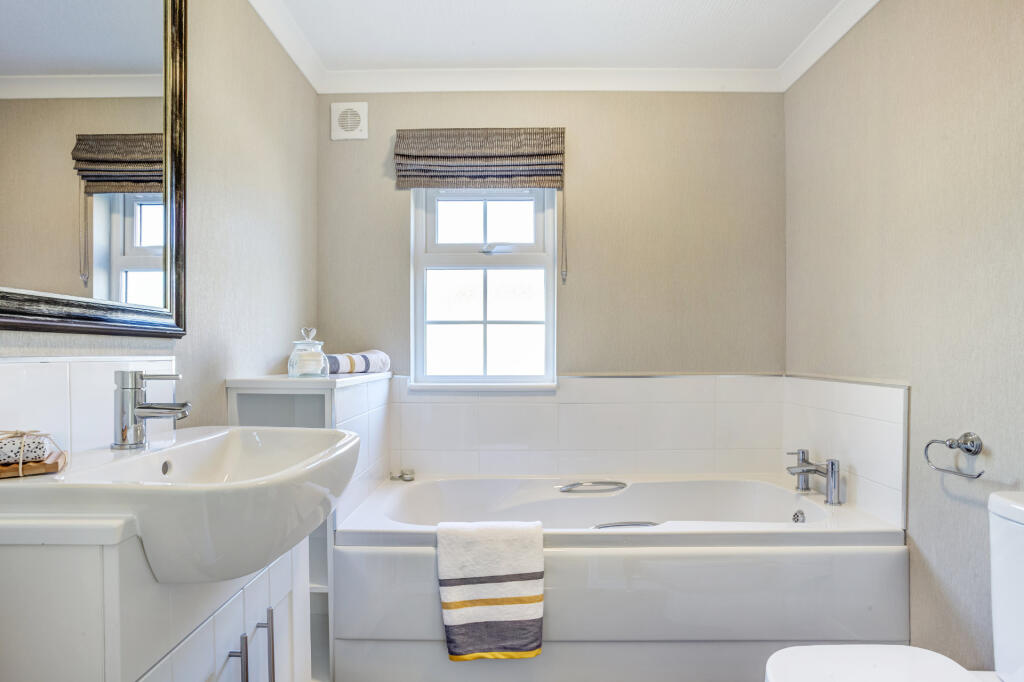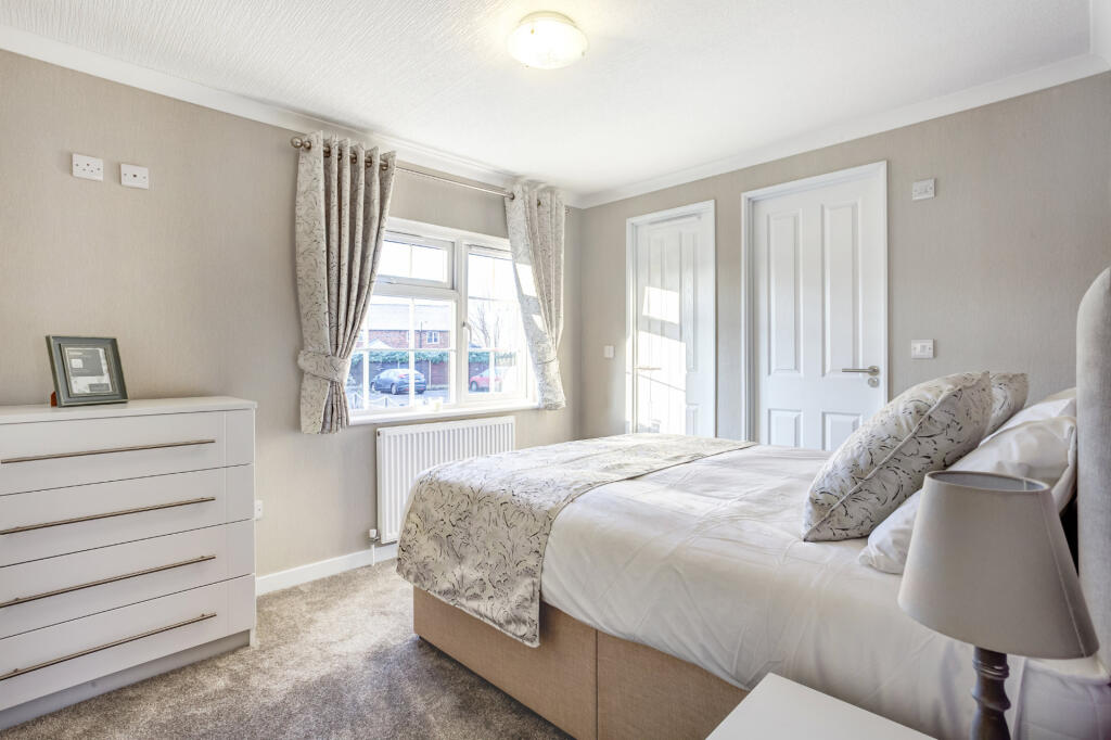 This park home is located in Nantwich, Cheshire, a desirable area in the North West of England. The property itself is a modern, well-maintained park home with two bedrooms and two bathrooms. The images show a clean, contemporary interior and exterior. While the plot size is small, the home benefits from a paved patio area and access to open green space, as seen in the photos. The list price of £174,995 is significantly lower than the average house price in the area (£429,516), and also lower than other nearby park homes. However, it is important to note that park homes generally sell for less than traditional properties. Considering the condition, location, and comparable properties, the price appears reasonable for this type of property.