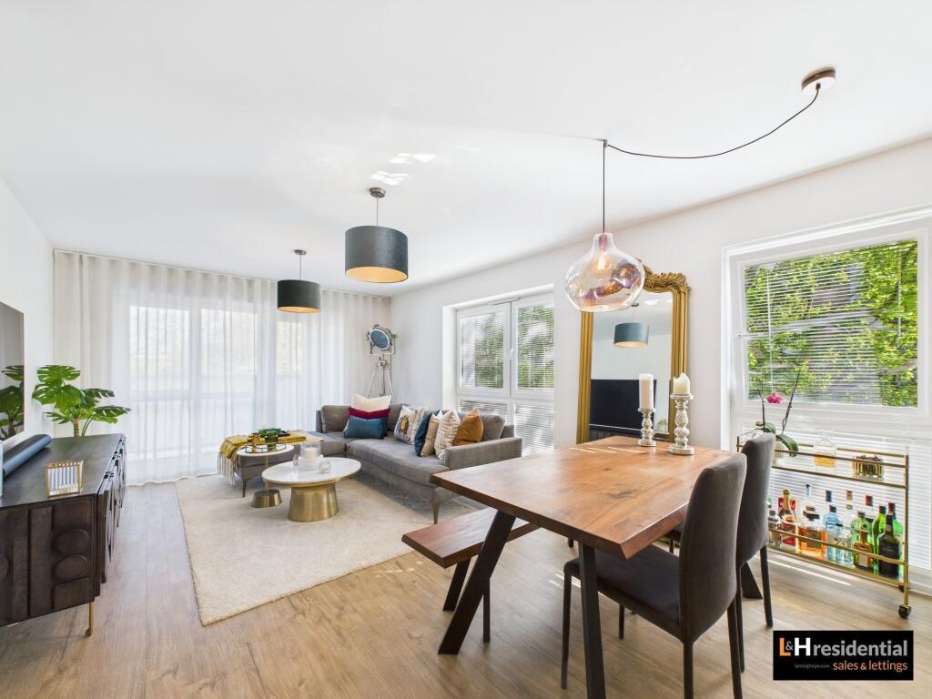 Modern 1-bed flat in Borehamwood with open-plan living, large balcony, allocated parking, and communal garden. Ideal for first-time buyers and investors. Close to train station.