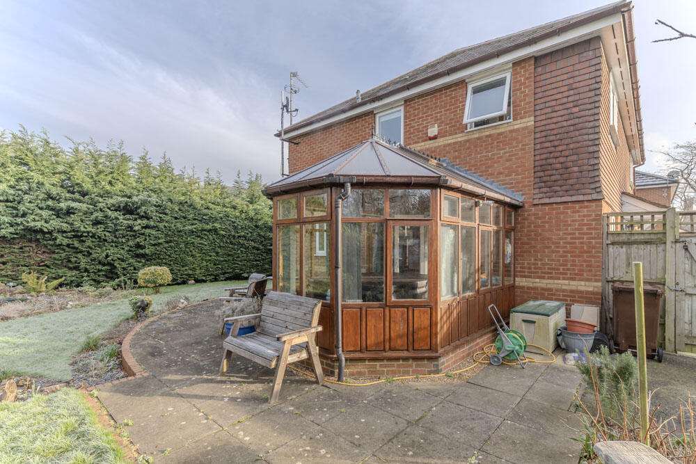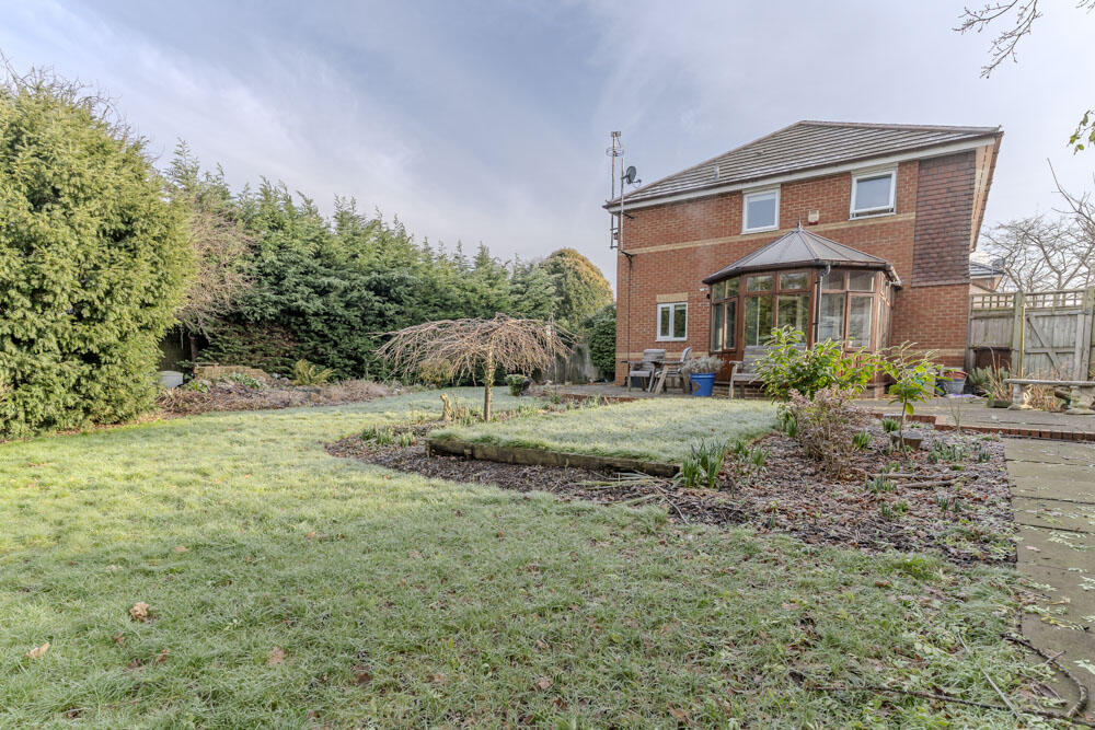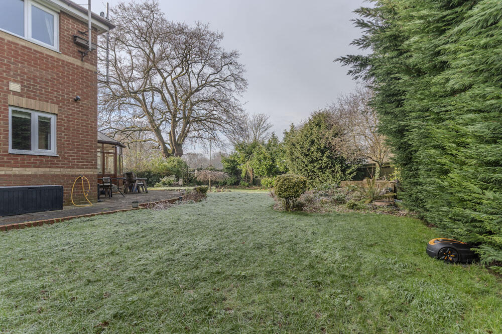 Originally constructed as part of this small cul-de-sac development in 1996 is this spacious family home occupying an enviable corner plot which creates opportunity for further development (subject to required consents) and facilitates parking and storage in the extensive wrap-around garden.