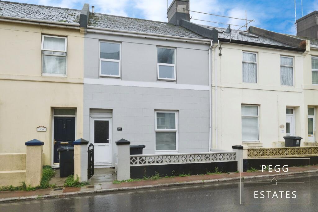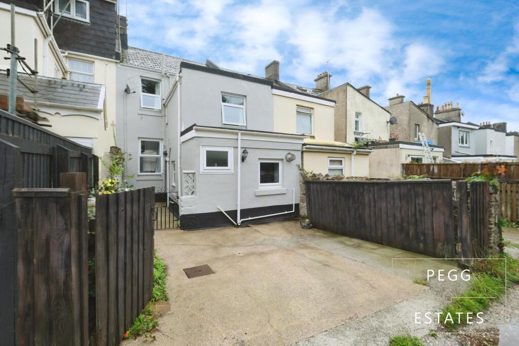 This is a terraced property on Babbacombe Road, Torquay, listed for £270,000. It features 4 bedrooms and 1 bathroom. The property appears to be in good condition internally, with a modern style. It benefits from being in close proximity to local schools. The rear of the property has a paved yard, offering limited garden space. The listing price is significantly below the average for the area, suggesting it could be an attractive purchase.