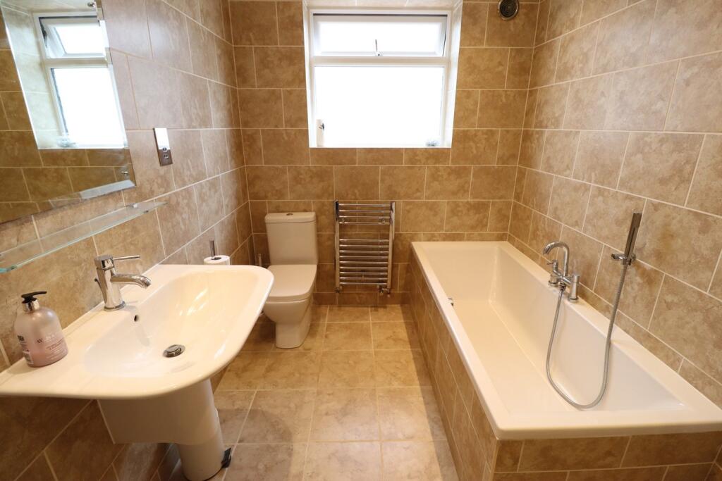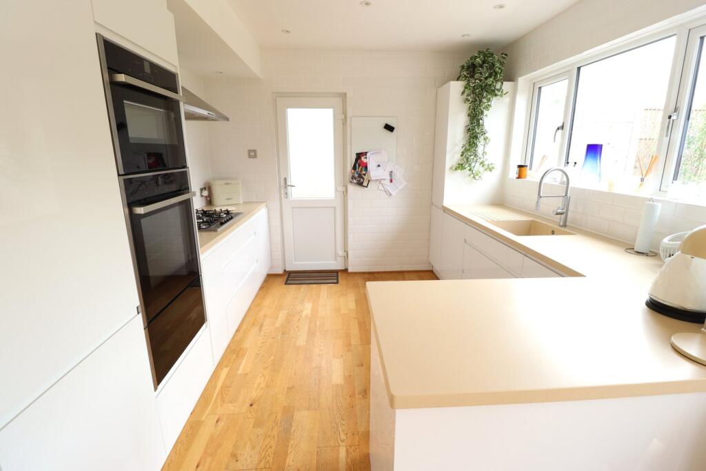 A detached property on Eastview Drive, Rayleigh, SS6. The house has three bedrooms, two bathrooms, and a well-maintained garden. The interiors are modern, particularly the kitchen and bathrooms. The property is located near schools and transportation links.