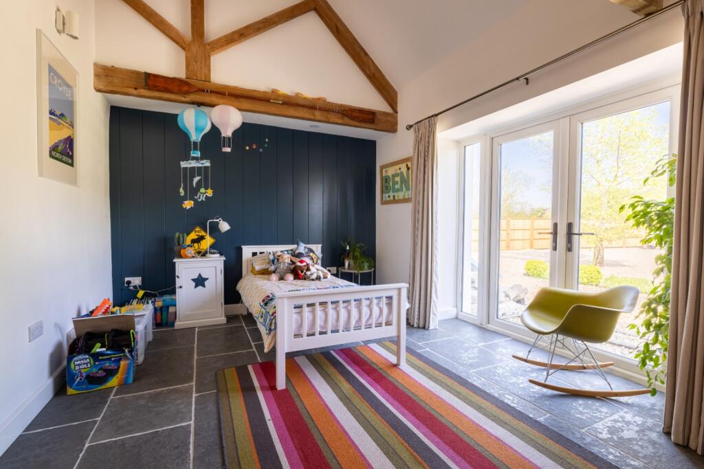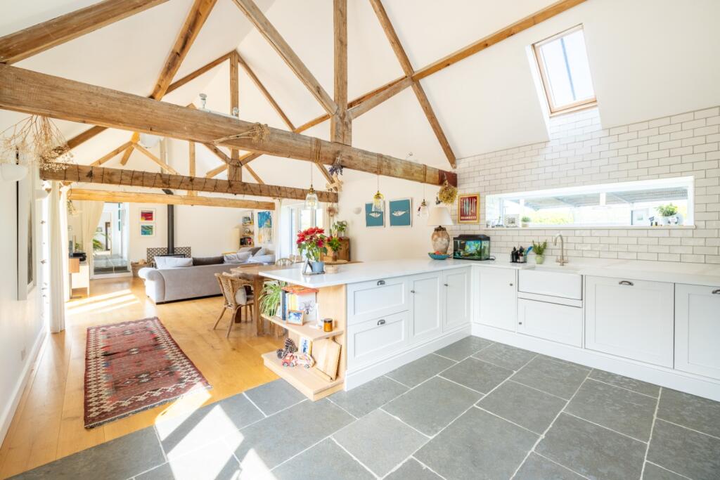 This property is a stunning barn conversion located in a rural setting near Axbridge, Somerset. The conversion appears to have been completed to a high standard, with modern fixtures, fittings, and a spacious, open-plan living area that showcases exposed wooden beams, a hallmark of barn conversions. The interior is bright and airy, with large windows letting in ample natural light. The property boasts several well-appointed bedrooms and bathrooms, suggesting sufficient space for a family. A key feature is the significant amount of land that comes with the property, including a garden, paddock, and stabling, making it attractive to those seeking a rural lifestyle with space for outdoor activities and potentially equestrian pursuits. The proximity to nearby schools and amenities needs to be considered carefully, as they are not immediately within close proximity. The lack of detailed plot size information and a clear comparison to similarly sized and equipped properties nearby makes it difficult to definitively assess the property’s overall value without further data. Overall, this barn conversion offers a beautiful, high-quality living space and a lifestyle ideal for those seeking a rural escape with spacious outdoor amenities.