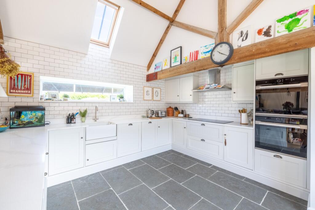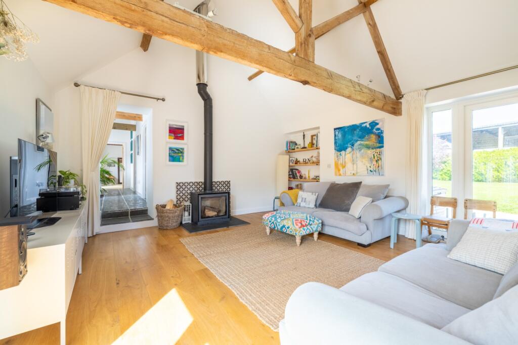 A stunning barn conversion with superb, spacious accommodation, garden, paddock and stabling. Towards an acre and planning granted for new timber double carport and studio above.