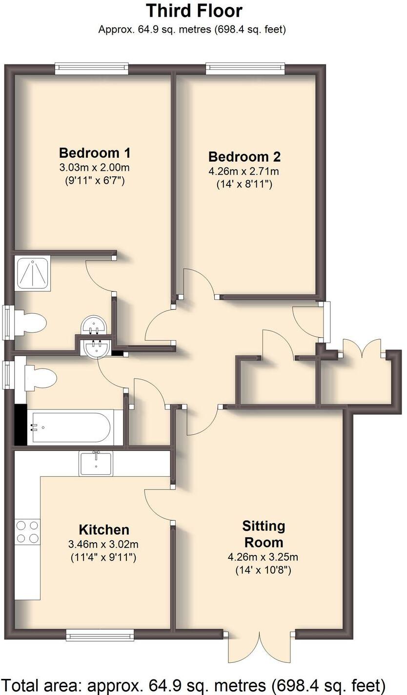 Modern 2-bed apartment with spacious living areas, en-suite bathroom, contemporary kitchen, and private balcony. Off-road parking. Conveniently located near amenities, transport links, and schools.