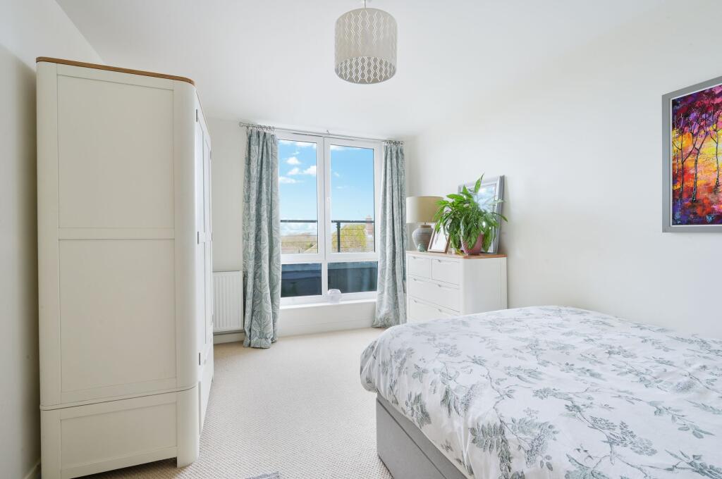 This penthouse apartment is located in East Grinstead, West Sussex, and is listed at £280,000. The property is a modern, two-bedroom, two-bathroom apartment with a sizeable living area and access to a private outdoor space. The apartment appears to be in excellent condition, with modern fixtures and fittings throughout. The location is convenient, with nearby transportation links and schools. However, the plot size is 0 sqft, meaning there is no garden. Considering the average price per sqft in the area is £457 and this property is £280,000, the price seems reasonable, especially considering the modern condition and convenient location. The lack of outdoor space beyond the private terrace may be a drawback for some buyers.