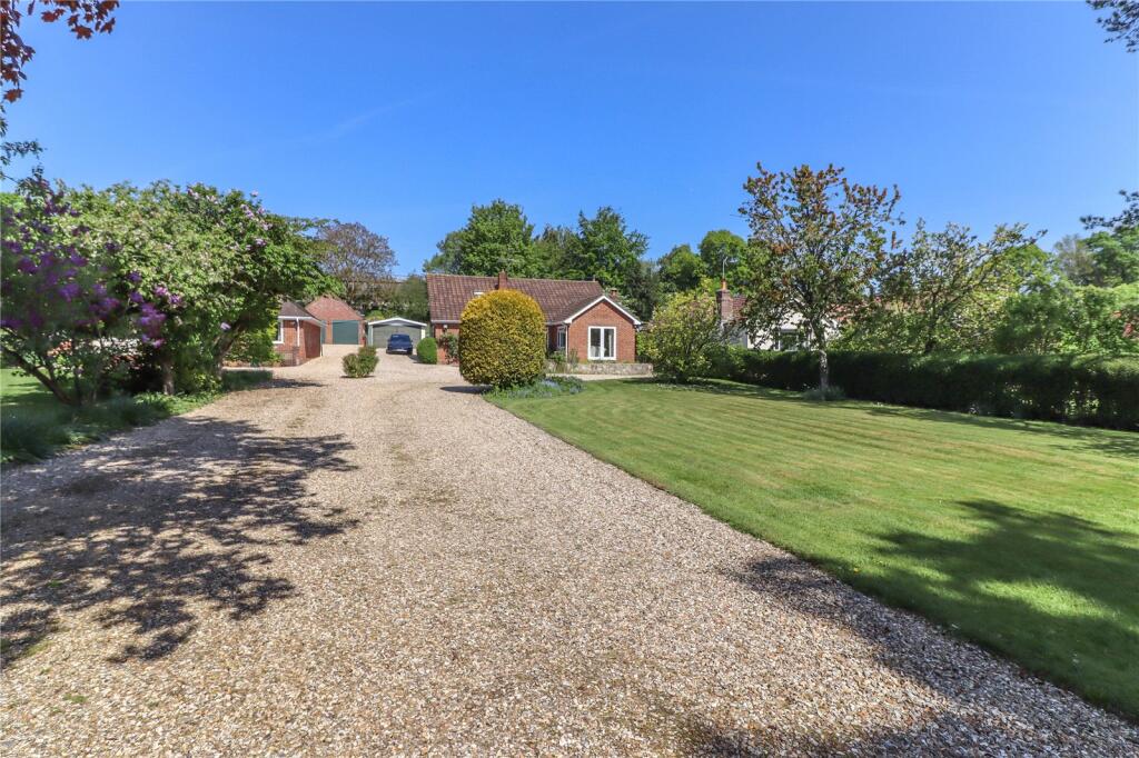 A large and versatile detached chalet style bungalow standing in just over half an acre featuring beautiful mature gardens with extensive parking and a double garage situated on the end of this popular village.