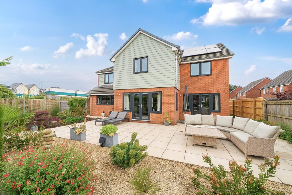 Stunning four-bed detached home in a quiet private development near Topsham. Features a luxury open-plan kitchen/family room, two en-suites, double garage, parking for four cars, and a landscaped south-facing garden with pond, allotment, and solar panels. Easy access to city, A38 & M5