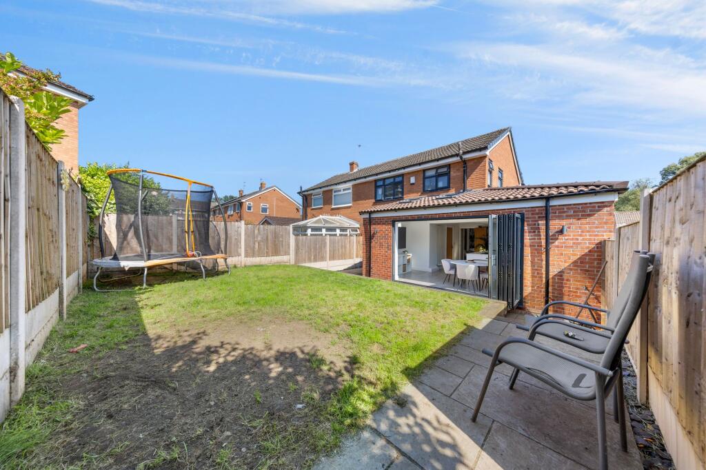 For Sale: Extended 3-Bed Semi in Great Sankey with modern features. Spacious living, open-plan extension, modern kitchen, garage, and double driveway. Excellent family home in sought-after location.