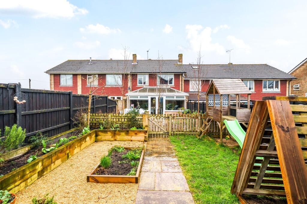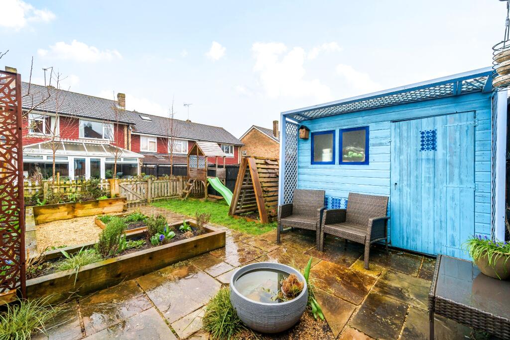 This is a three-bedroom terraced house in Andover Winton, Hampshire. The property benefits from a modern kitchen, a conservatory, and a garden with a shed and patio. It is located close to well-regarded schools and has good transport links via the nearby railway station. The property appears to be in good condition and is priced competitively compared to the average property price in the area. The property is listed with Austin Hawk Estate Agents.