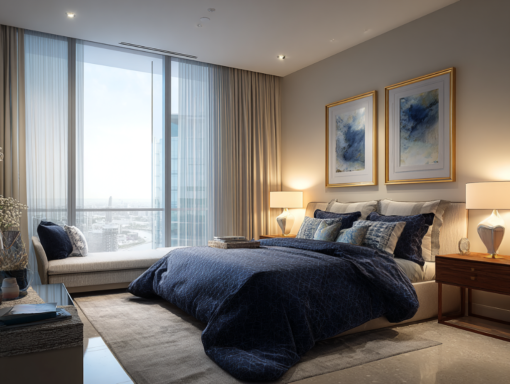 A beautifully designed Studio-style open-plan suite on the 63rd floor of Landmark Pinnacle, offering stunning skyline views, premium interiors, comfort cooling, and exceptional resident facilities including gym, cinema, and sky gardens - in the heart of Canary Wharf, E14.