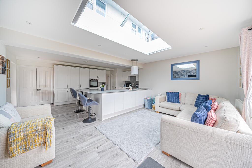 This extended semi-detached house is located in an established residential road close to local amenities. The well presented and spacious accommodation comprises hallway, living room/bedroom 4, stunning kitchen/living/dining room, cloakroom, three first floor bedrooms and a contemporary bathroom....