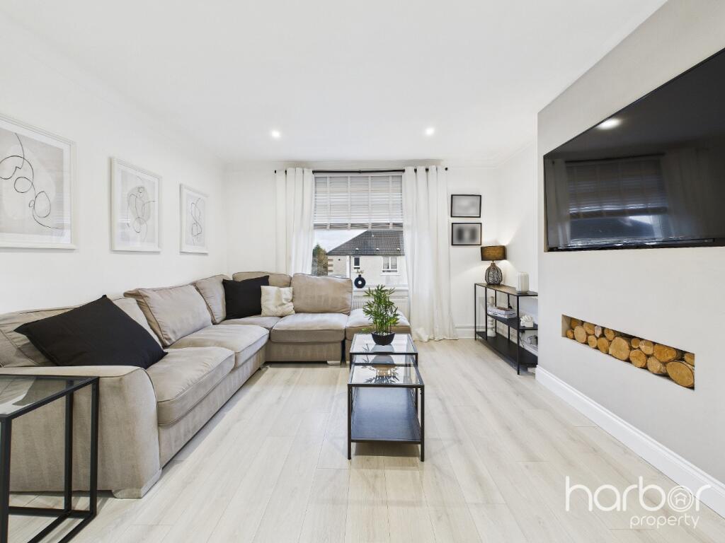 This immaculate two-bedroom upper cottage flat on Lockhart Street, Glasgow offers stylish, flexible accommodation presented in true walk-in condition throughout, with the added bonus of a floored and converted attic providing valuable additional living space.