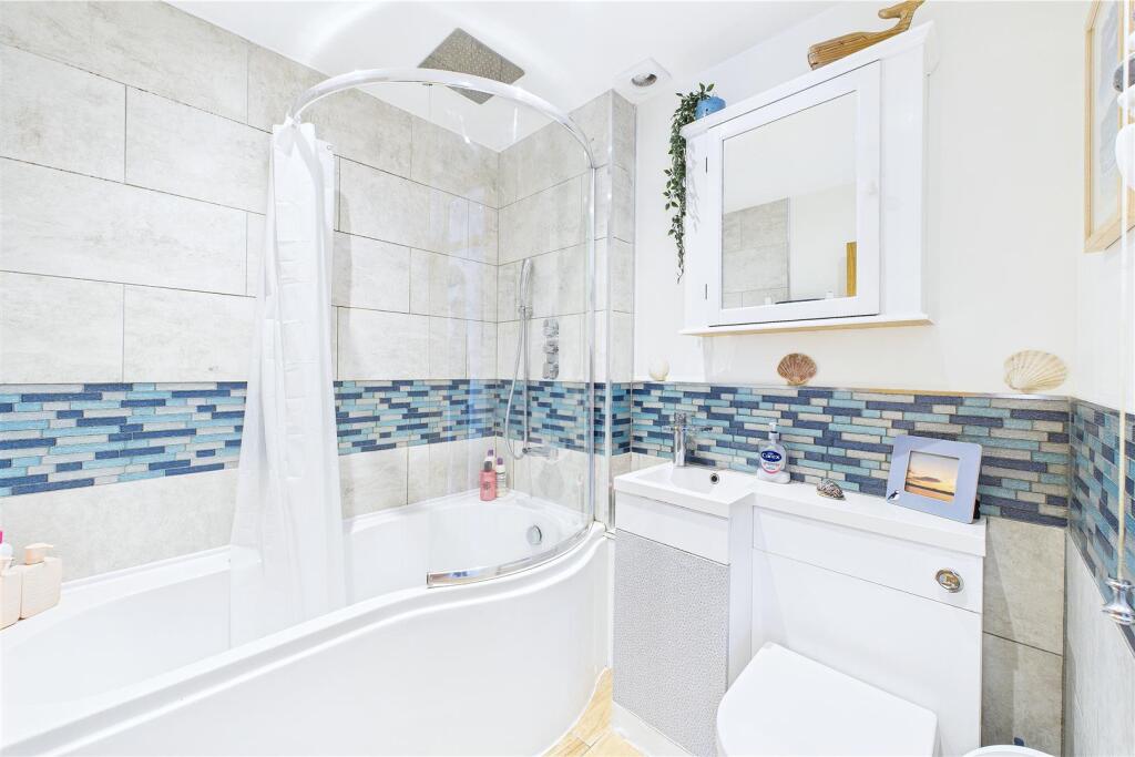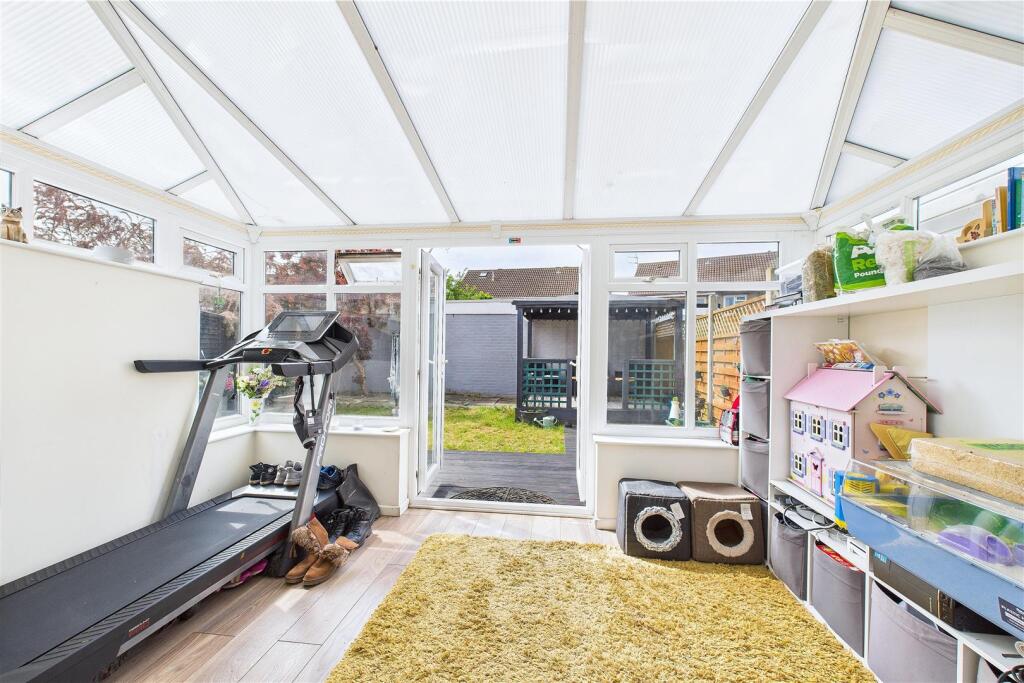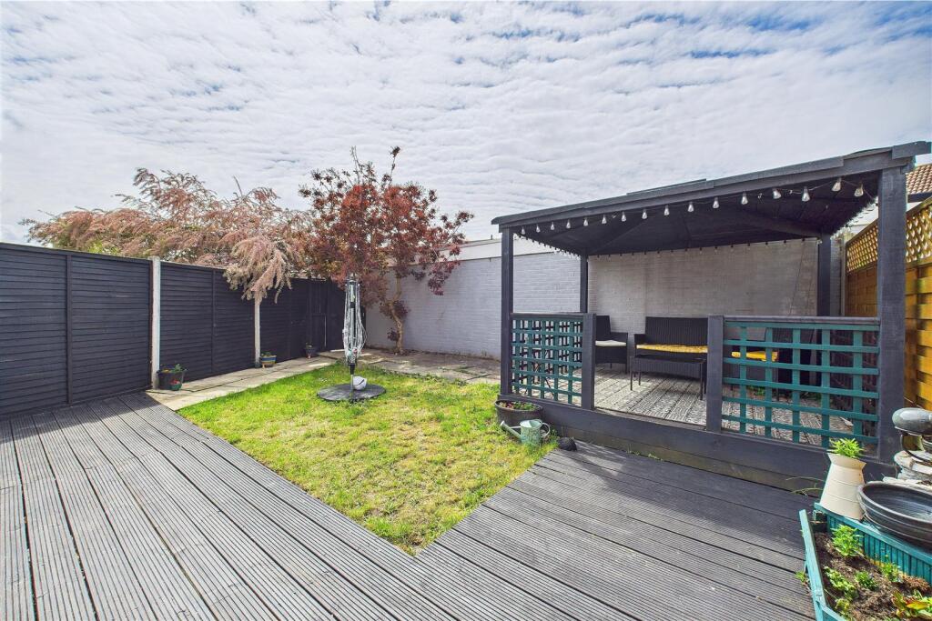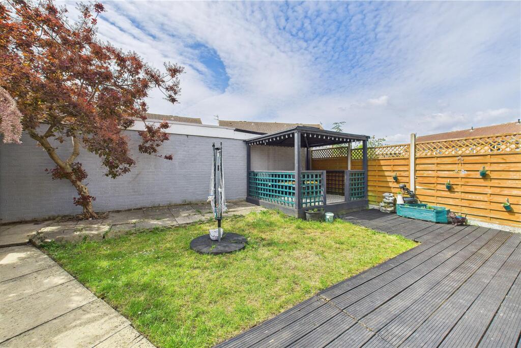 Based on the provided images, the property appears to be in good condition. The interior is well-maintained and recently decorated, with a modern kitchen and bathroom. There is evidence of a recently updated interior, suggesting minimal need for renovations. The property also benefits from a conservatory and a good-sized garden with a patio area and a gazebo.
