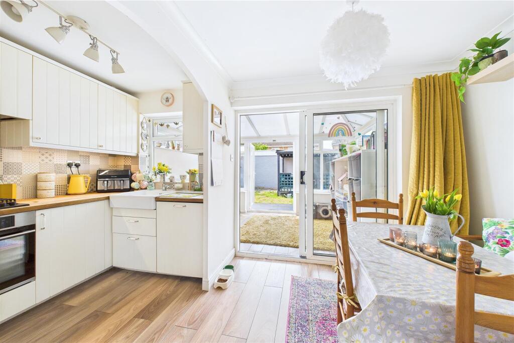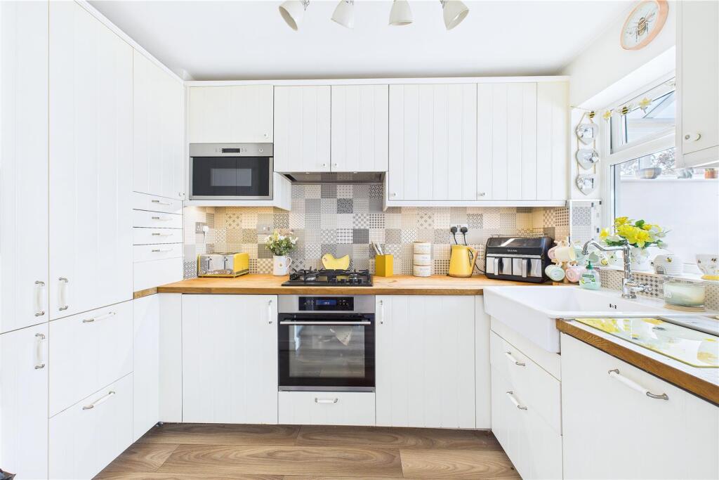 Nestled in a quiet position overlooking a communal green, this lovingly updated three-bedroom family home is a superb choice for those seeking tucked away yet connected lifestyle. The current owners have thoughtfully modernised the property, creating a stylish and practical living space.